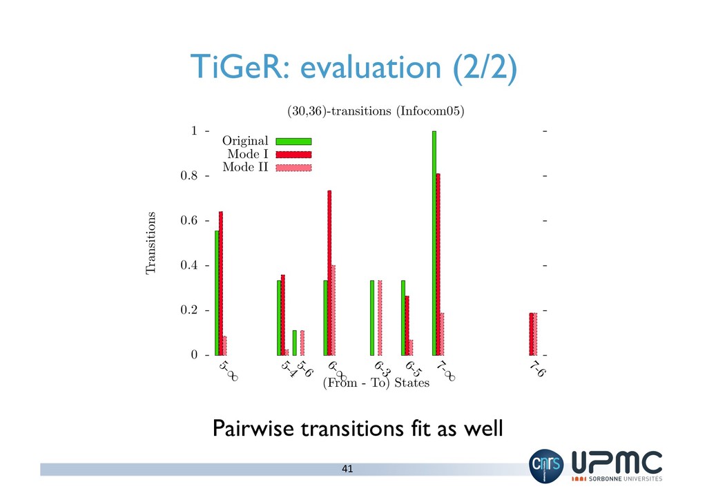 5-4 5-6 5-7 6-∞ 6-1 6-2 6-3 6-4 6-5 6-7 7-∞ 7-1 7-2 7-3 7-4 7-5 7-6 (From - To) States Average VM Mode I Mode II TiGeR: evaluation (1/2) Average transitions do match 39