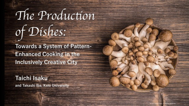 This presentation will introduce a system of new personas, places, systems, processes, tools, environments, and hearts for cooking in the Inclusively Creative city. These concepts and practices are inspired by the idea and theories of Pattern Language.
