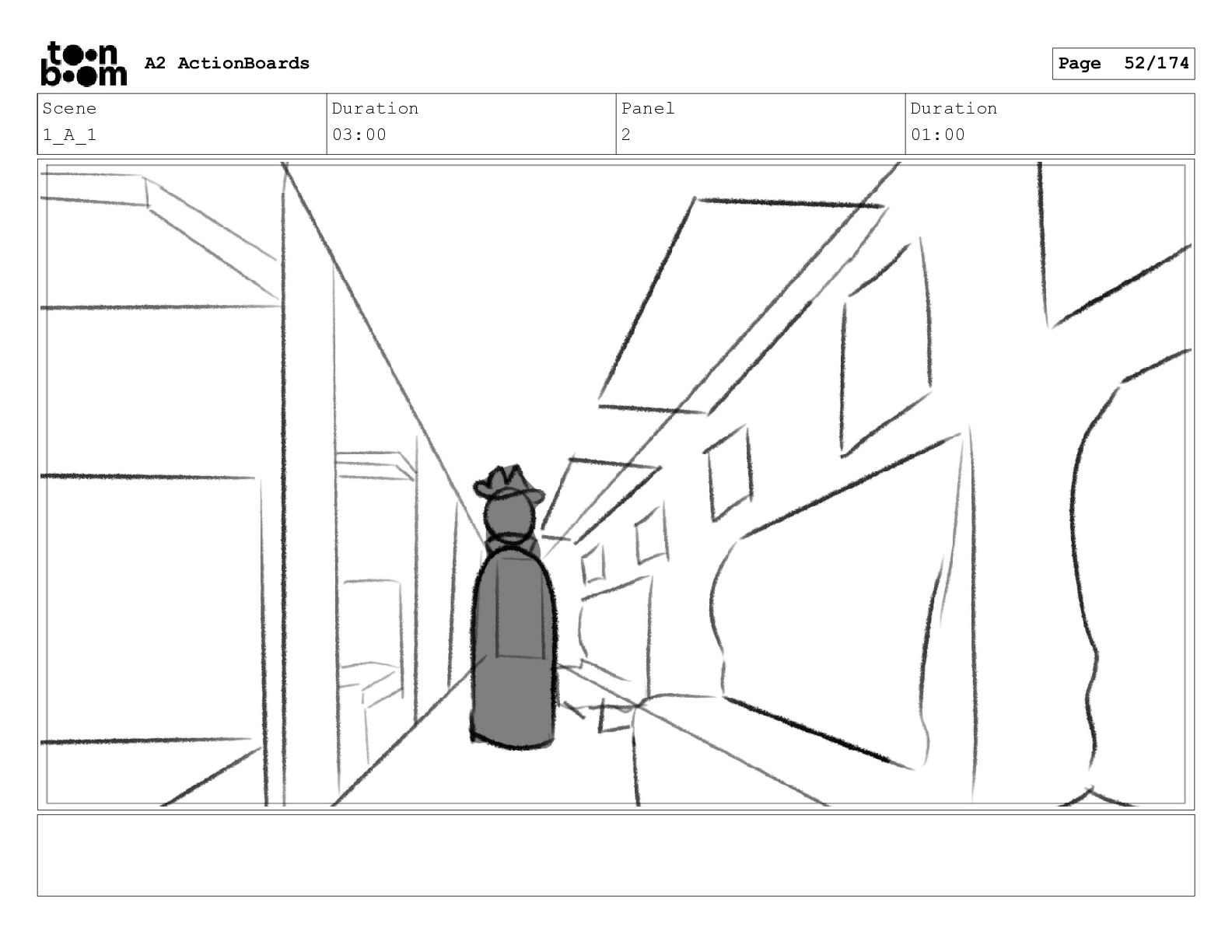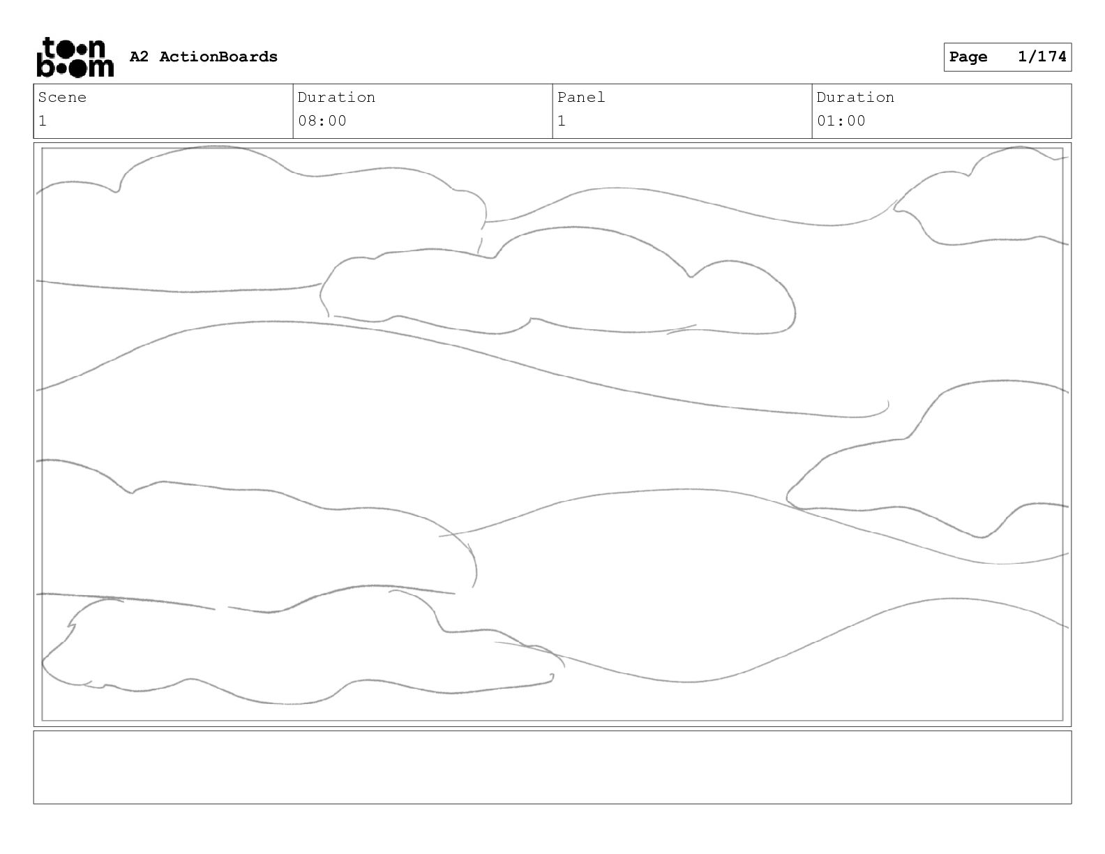 Scene 1 Duration 08:00 Panel 1 Duration 01:00 A2 ActionBoards