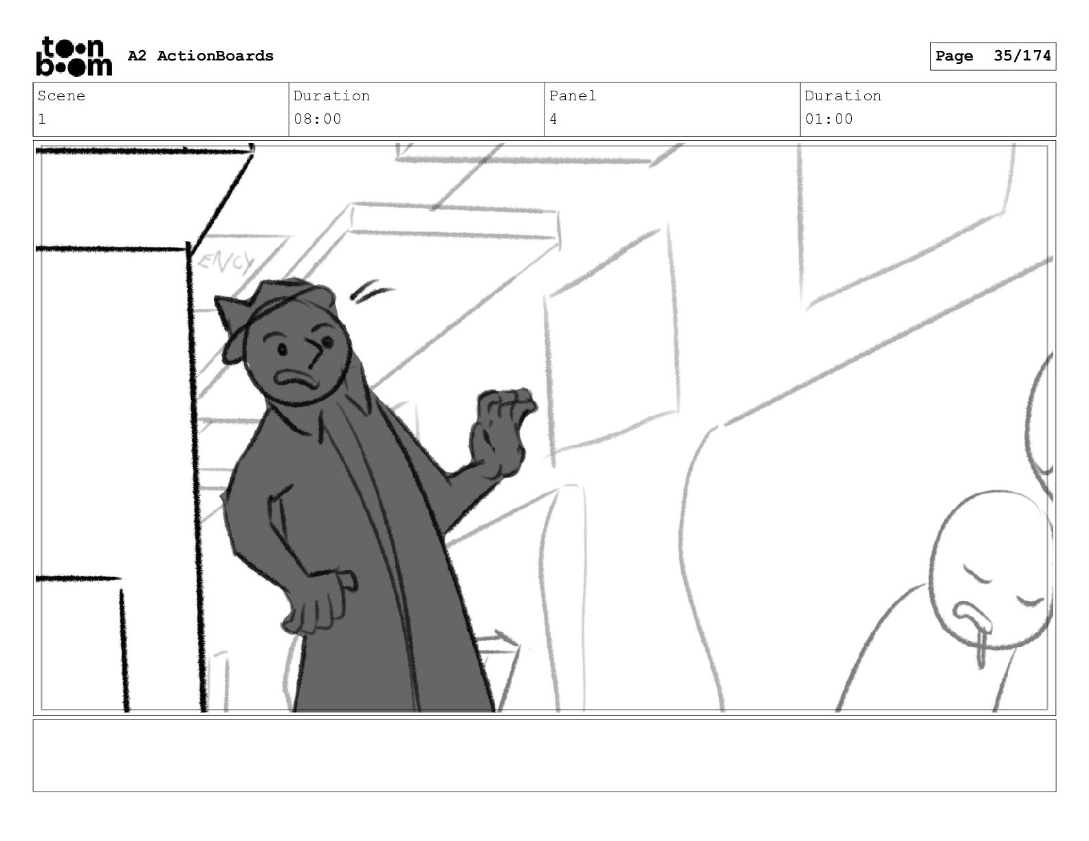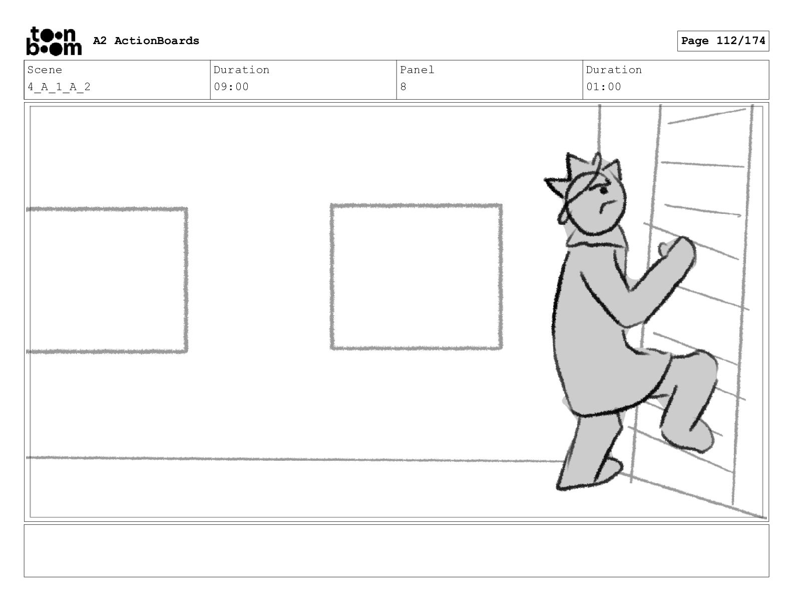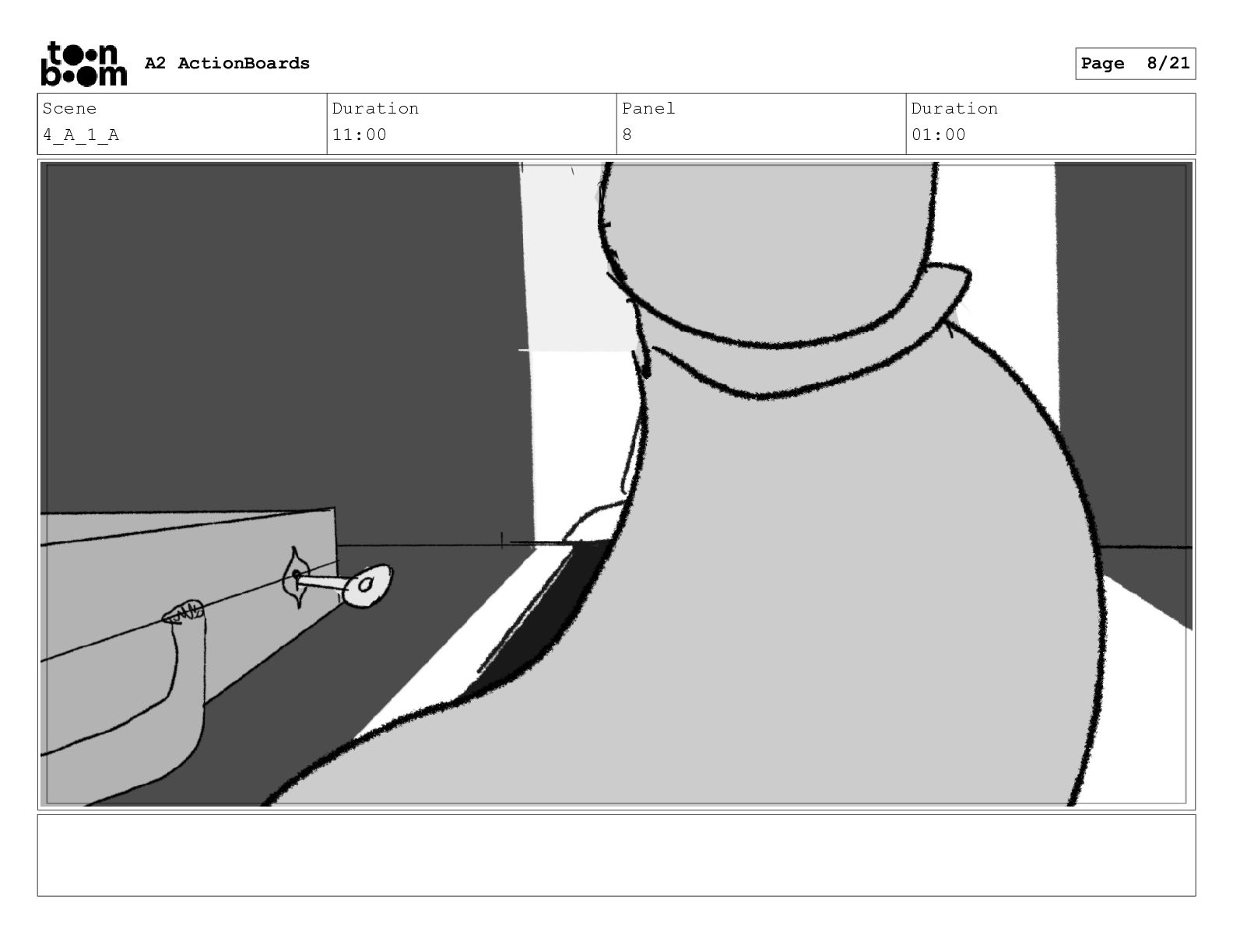 Scene 1 Duration 08:00 Panel 4 Duration 01:00 A2 ActionBoards