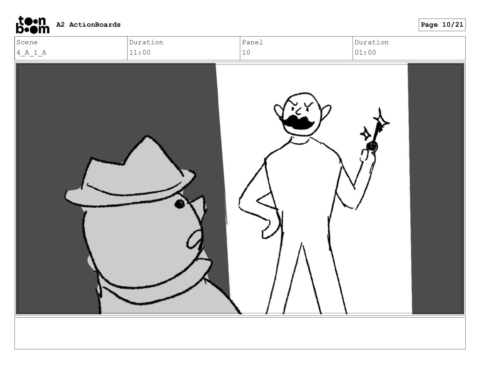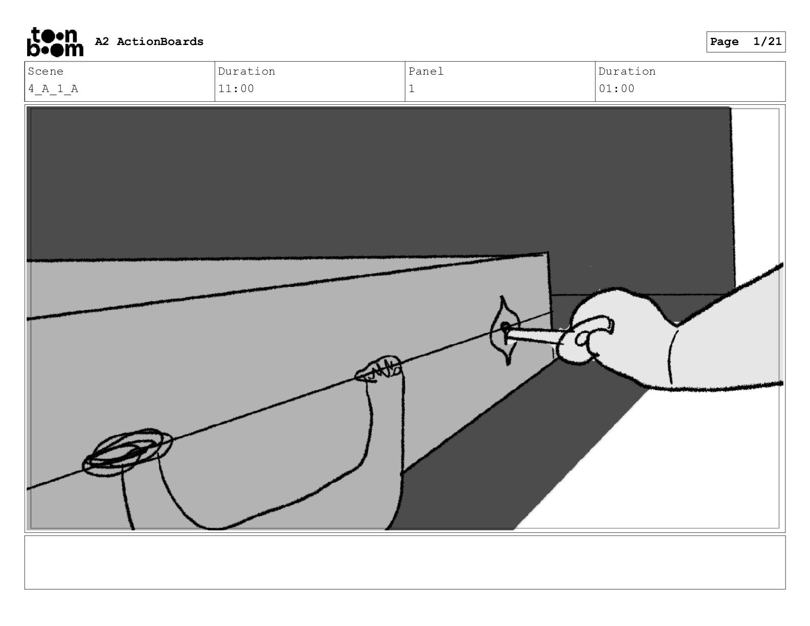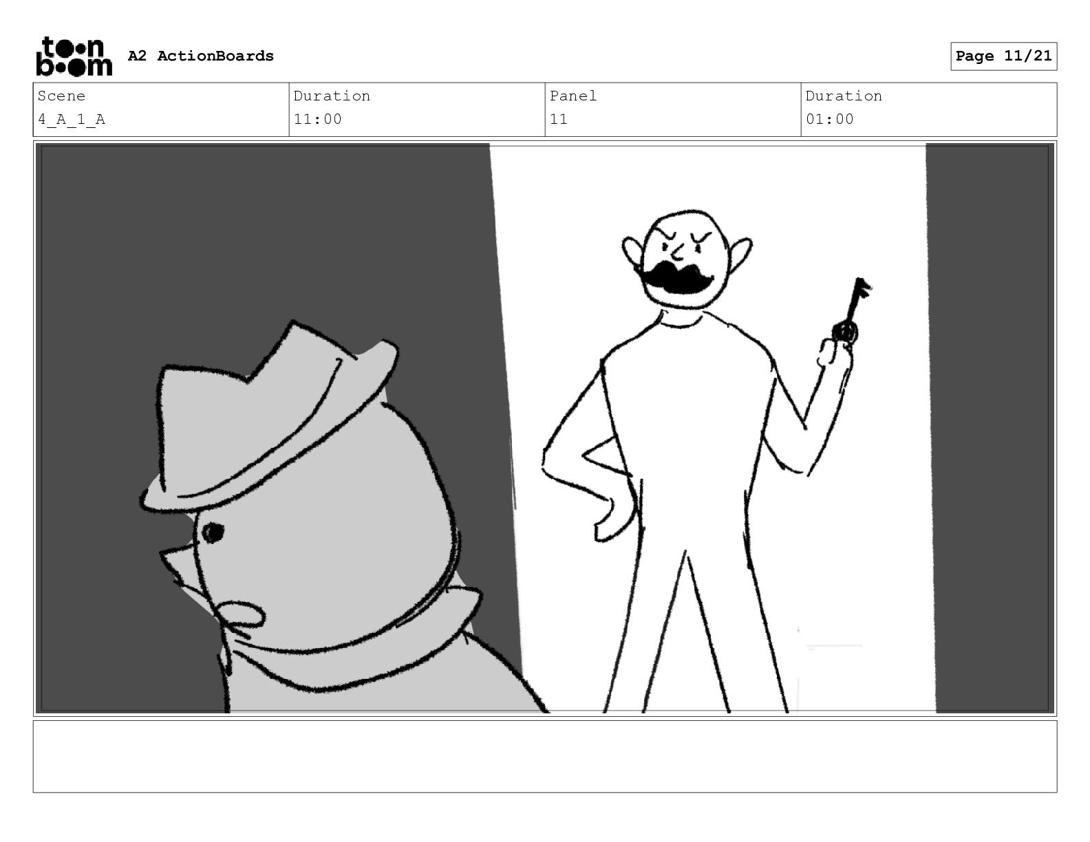 Scene 11 Duration 04:00 Panel 1 Duration 01:00 A2 ActionBoards