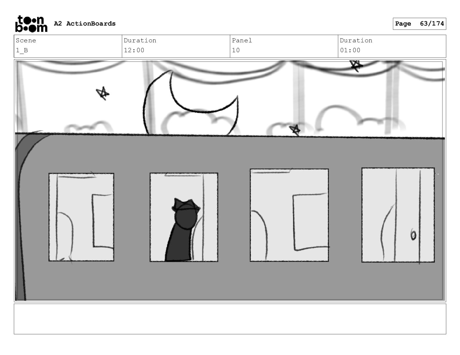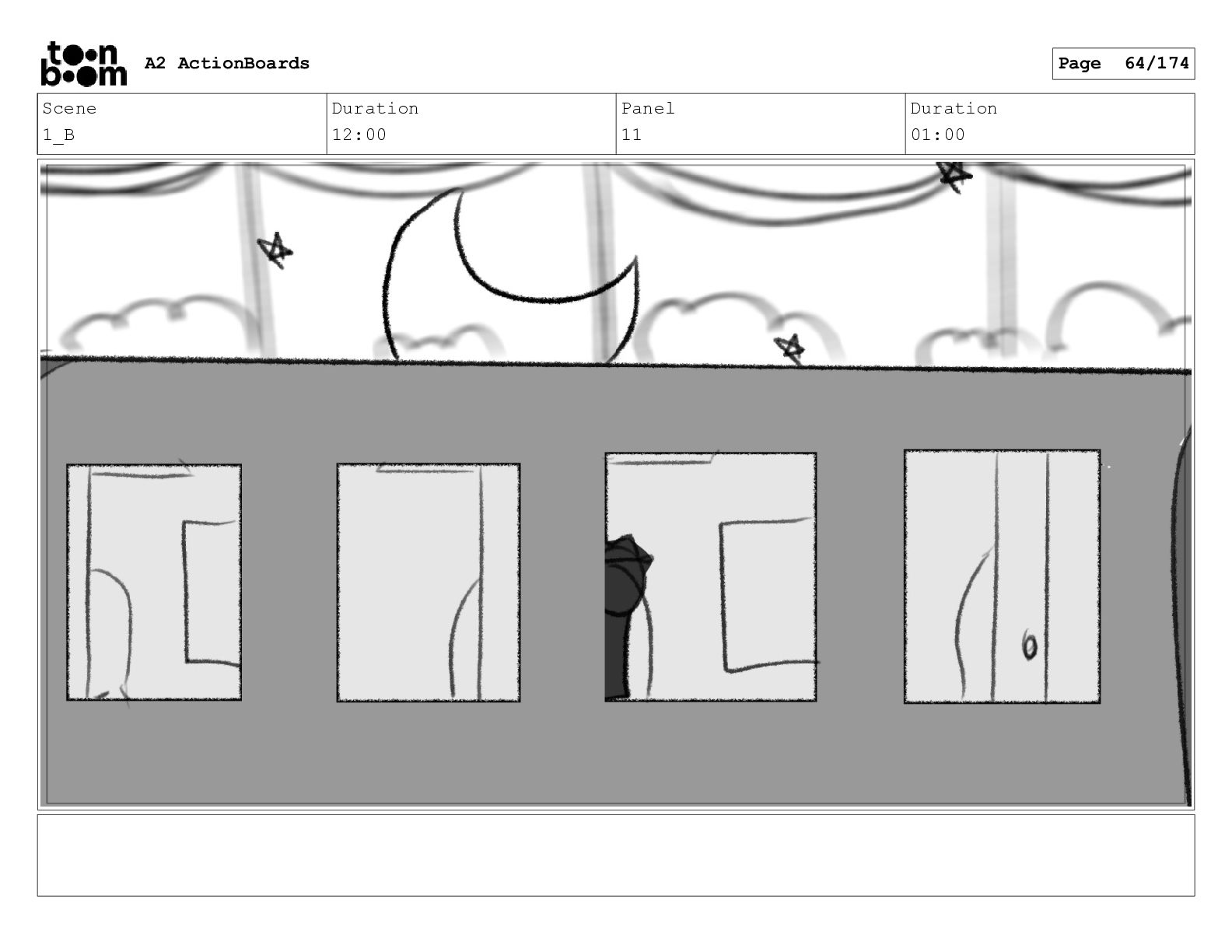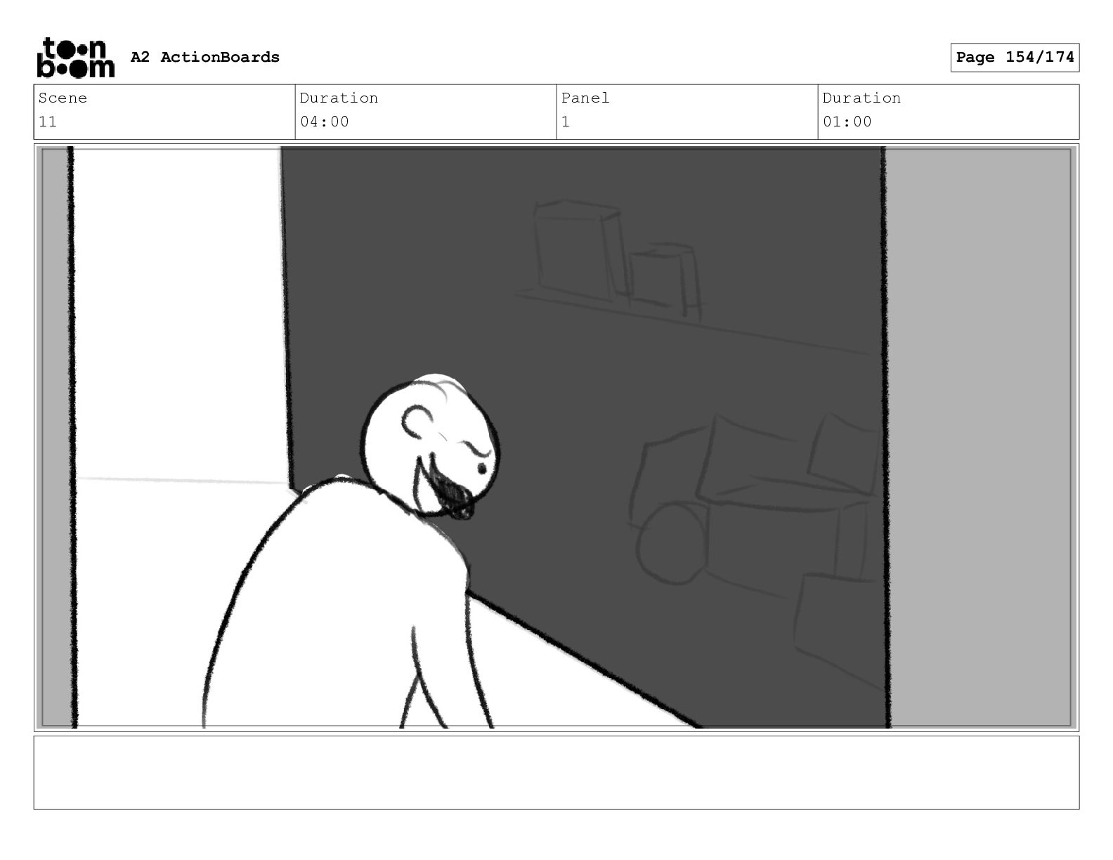 Scene 11 Duration 04:00 Panel 1 Duration 01:00 A2 ActionBoards