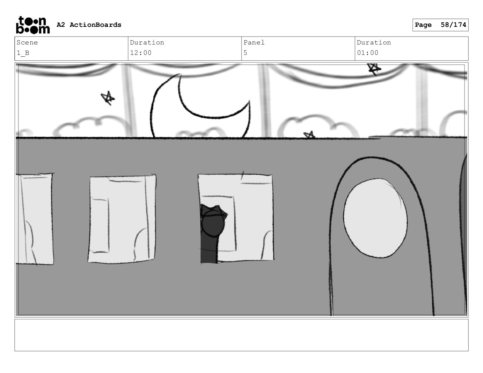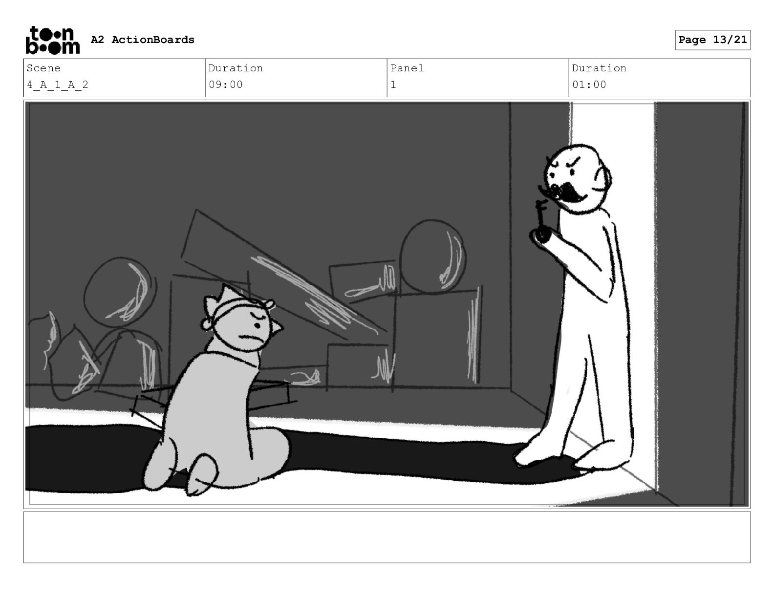 Scene 13 Duration 05:00 Panel 1 Duration 01:00 A2 ActionBoards
