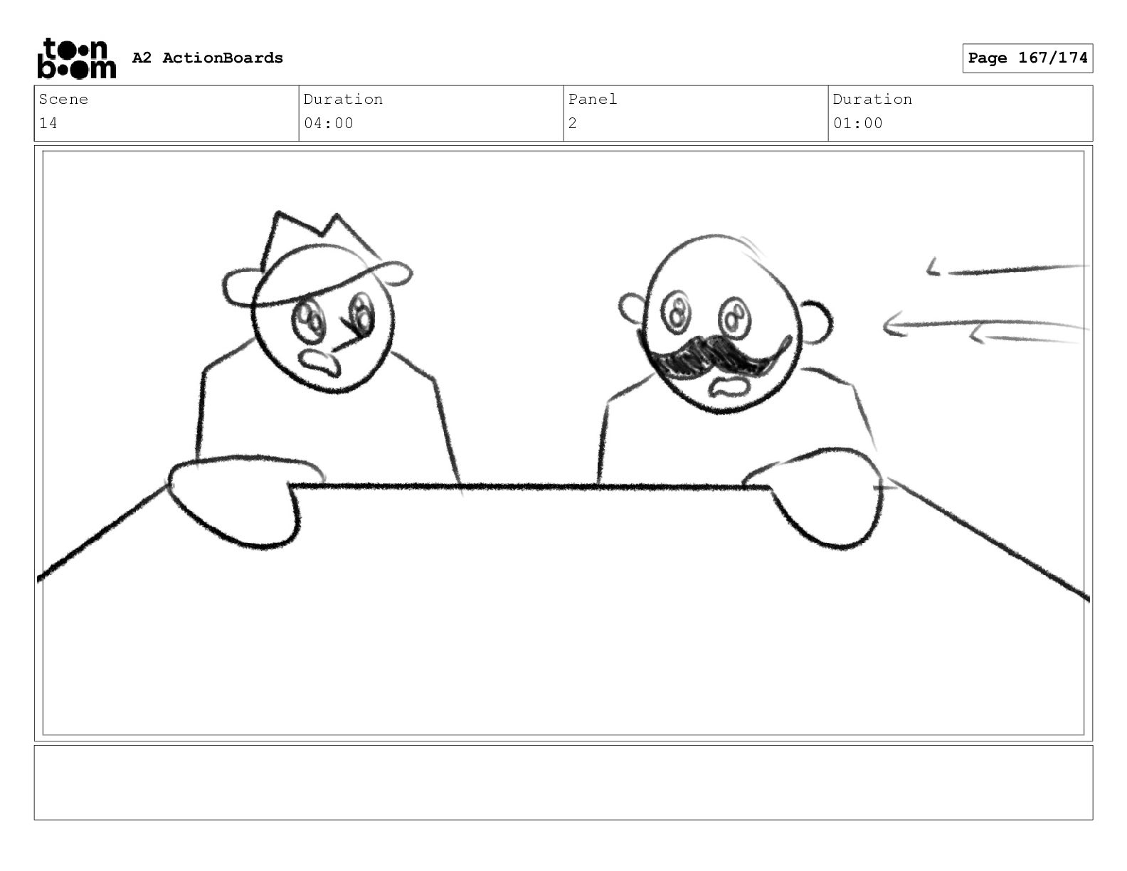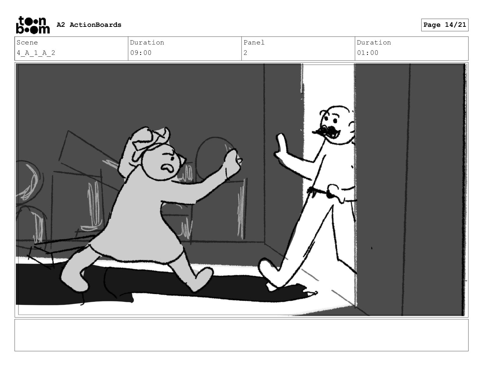 Scene 14 Duration 04:00 Panel 1 Duration 01:00 A2 ActionBoards