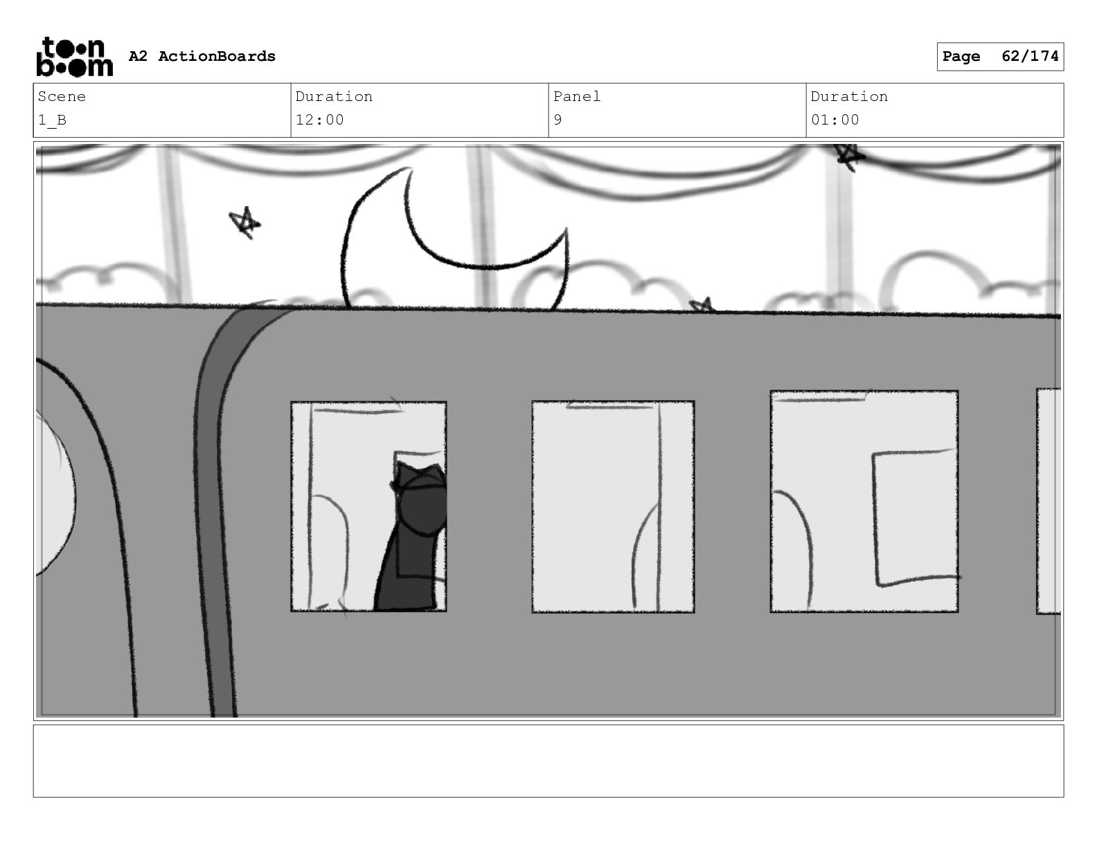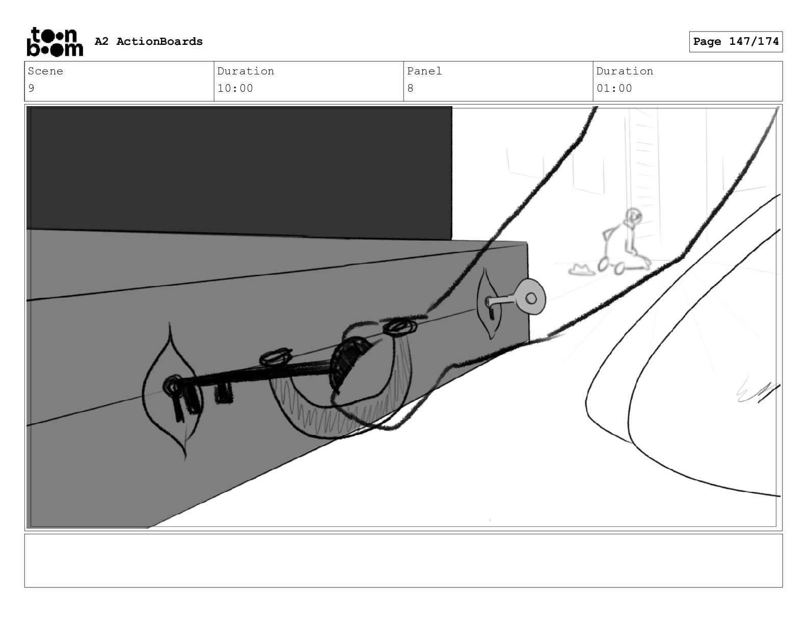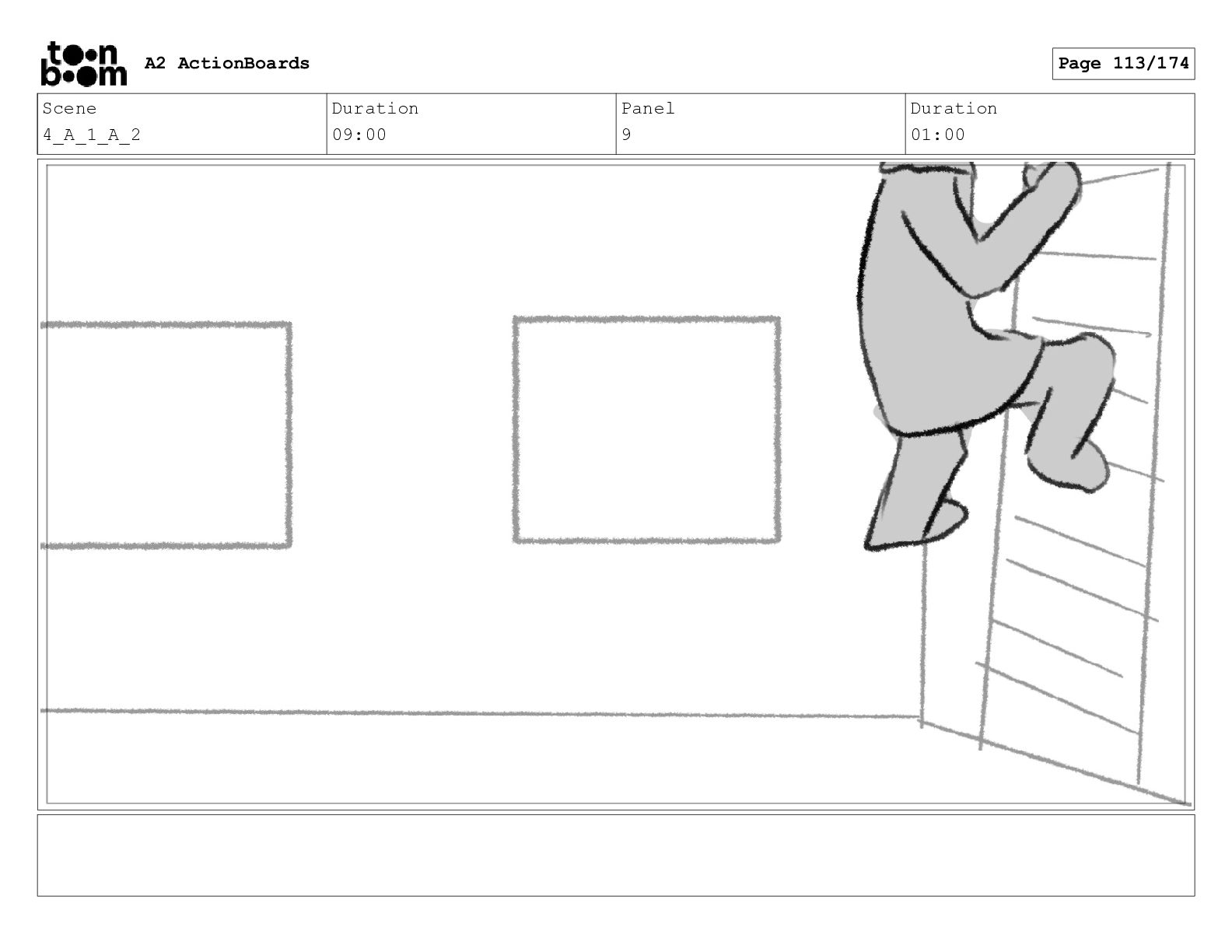 Scene 9 Duration 10:00 Panel 1 Duration 01:00 A2 ActionBoards