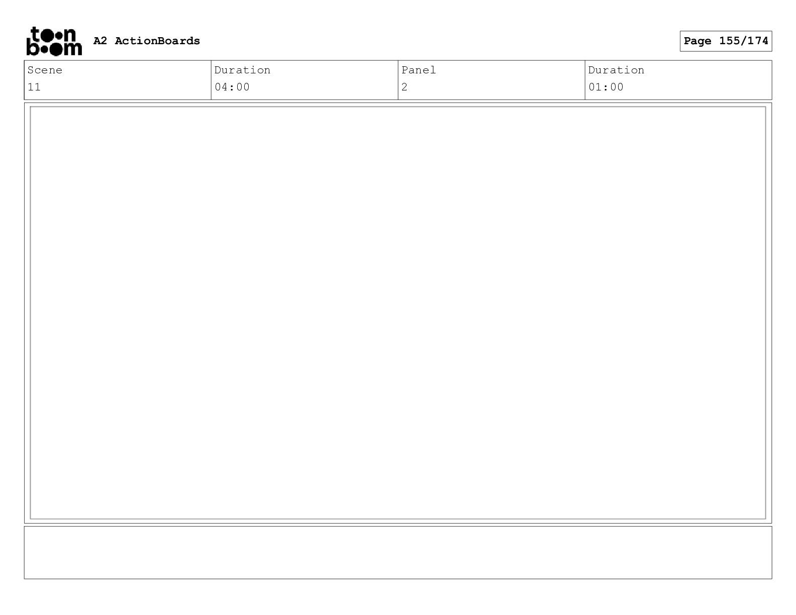 Scene 11 Duration 04:00 Panel 4 Duration 01:00 A2 ActionBoards