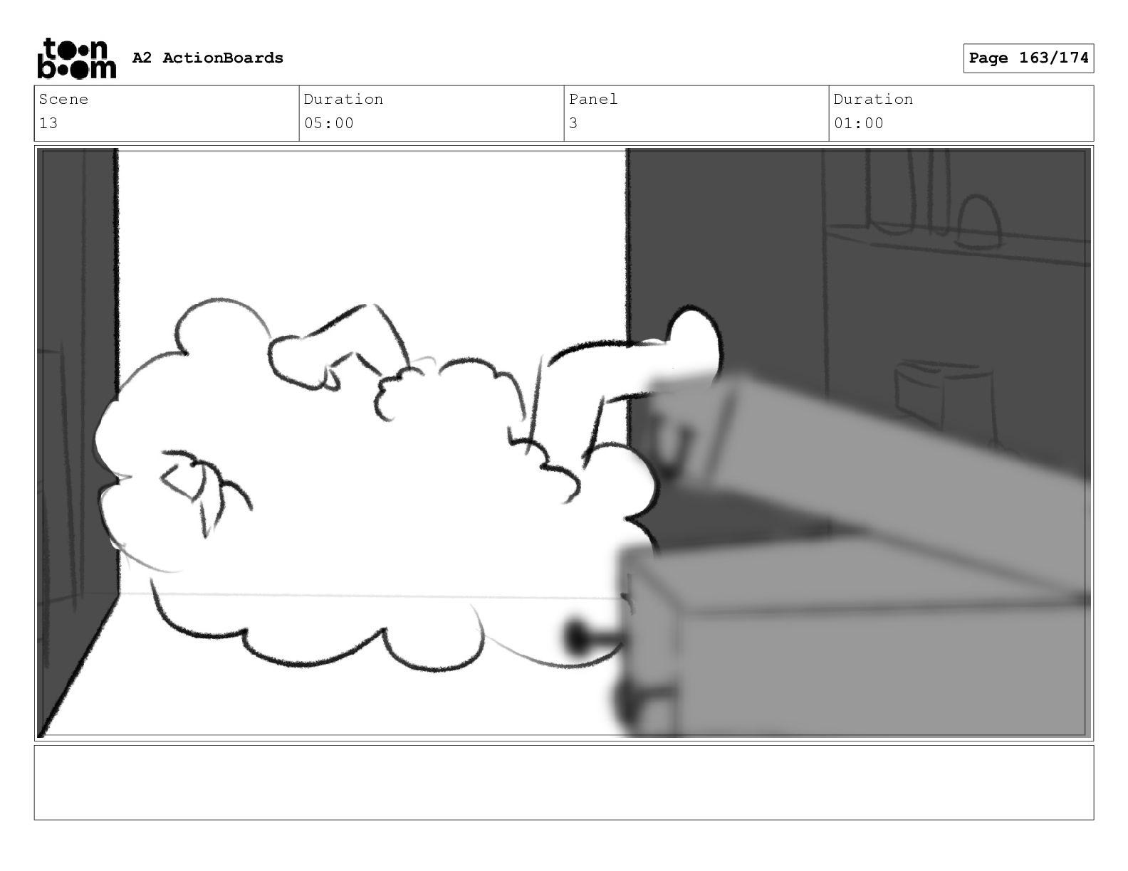Scene 13 Duration 05:00 Panel 3 Duration 01:00 A2 ActionBoards