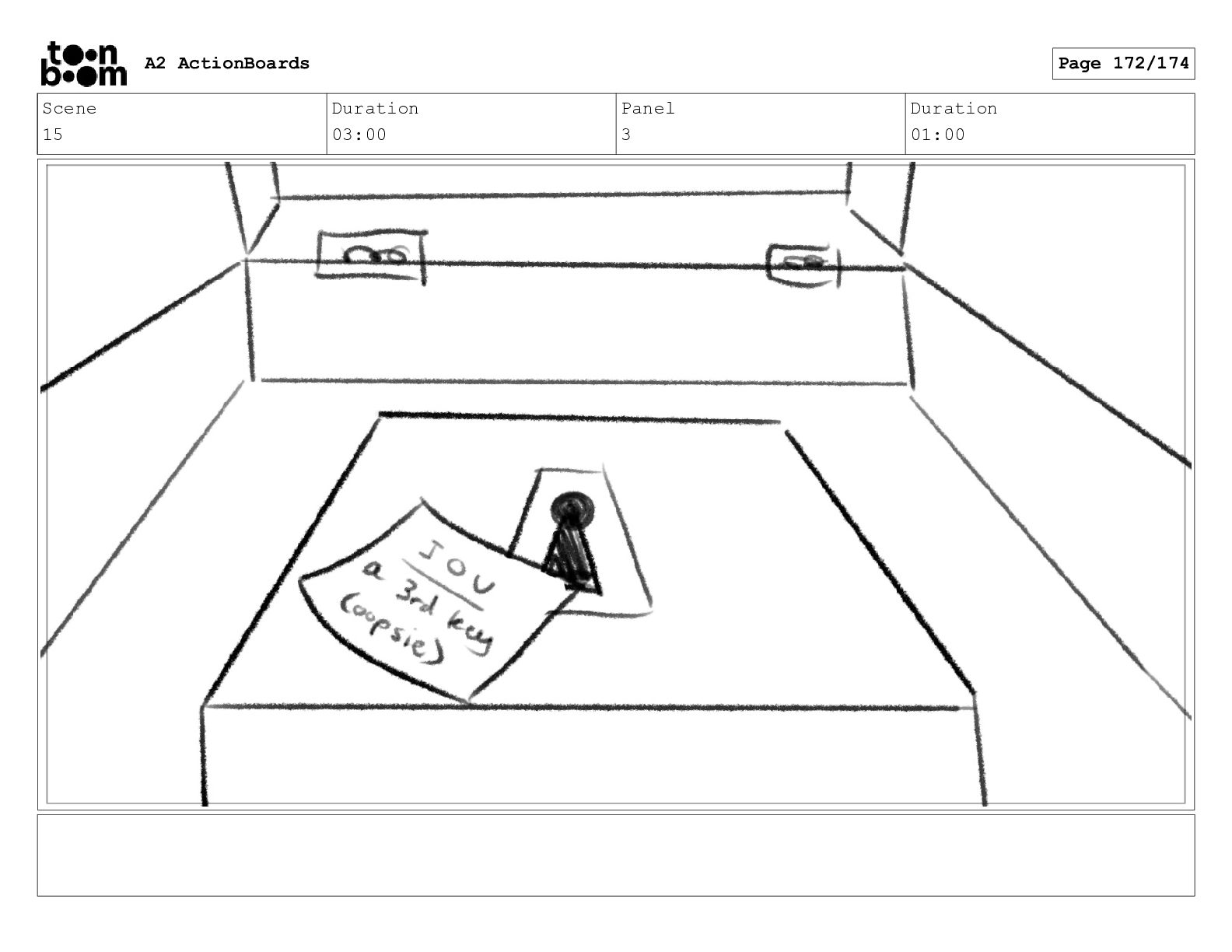 Scene 15 Duration 03:00 Panel 3 Duration 01:00 A2 ActionBoards