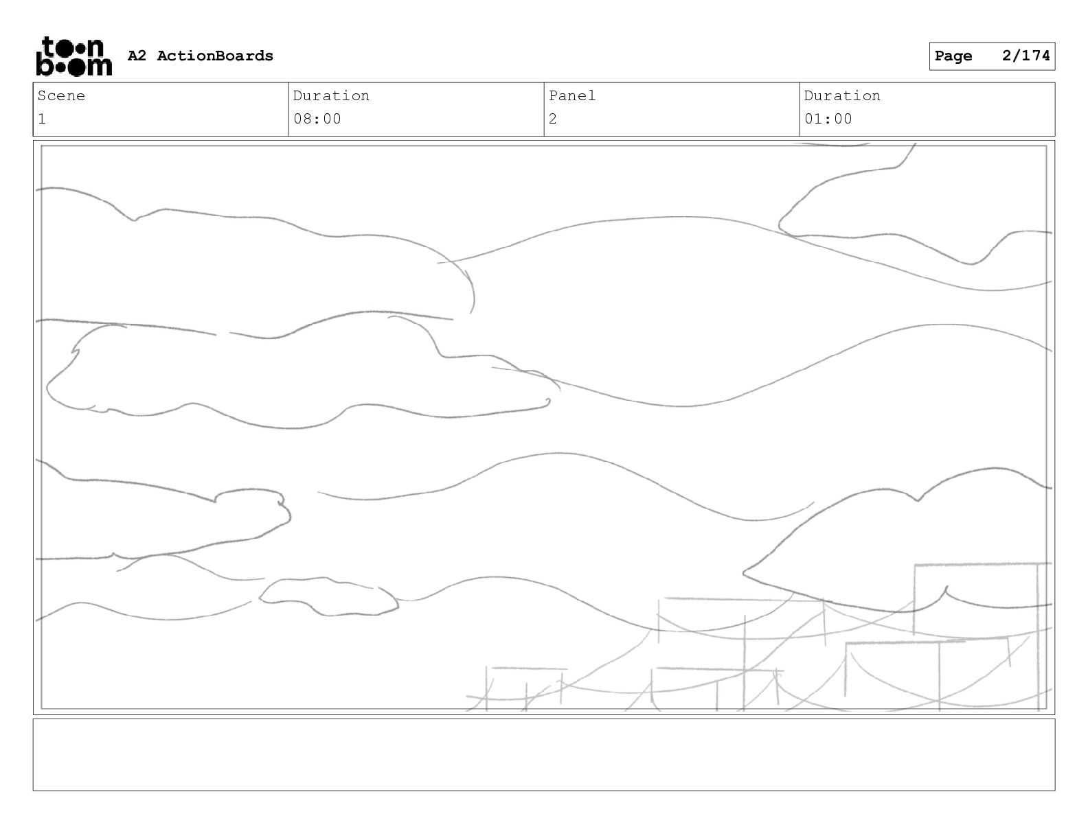 Scene 1 Duration 08:00 Panel 2 Duration 01:00 A2 ActionBoards