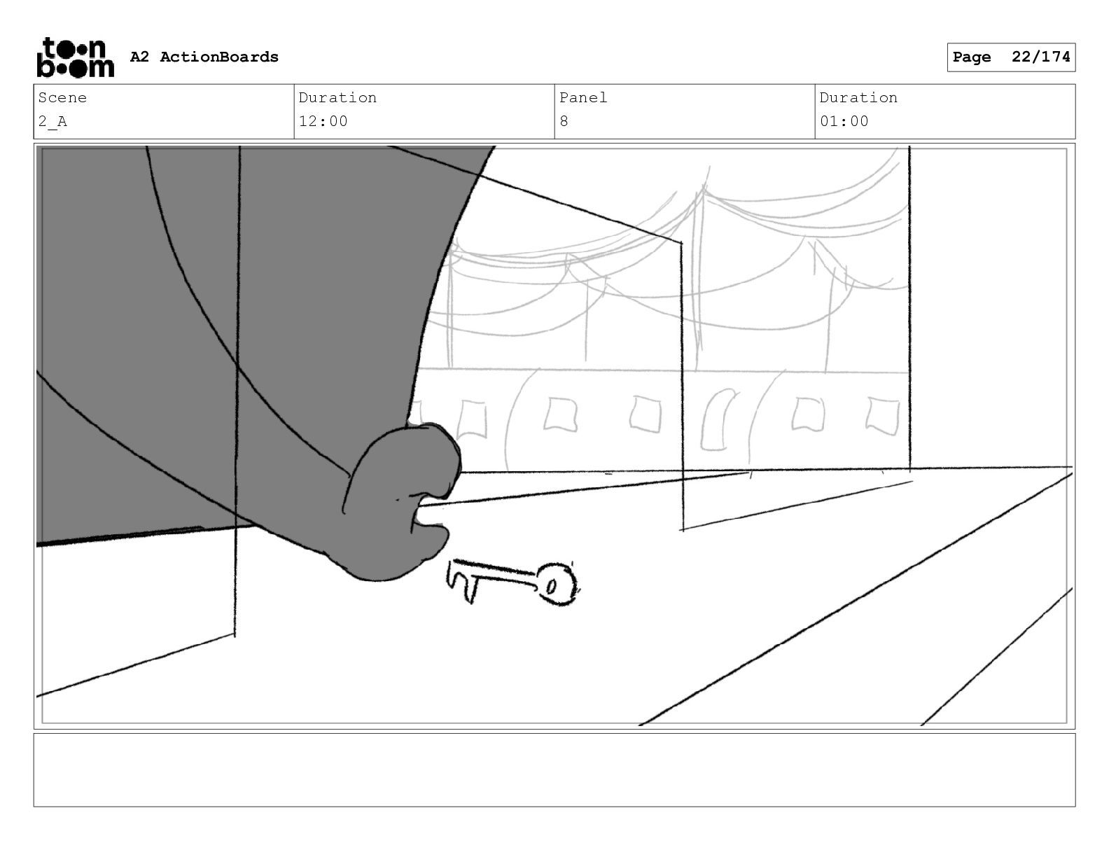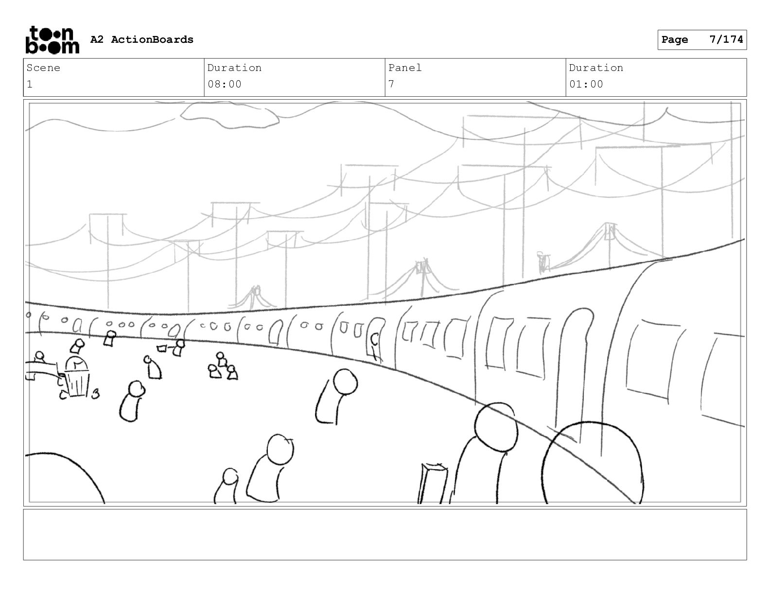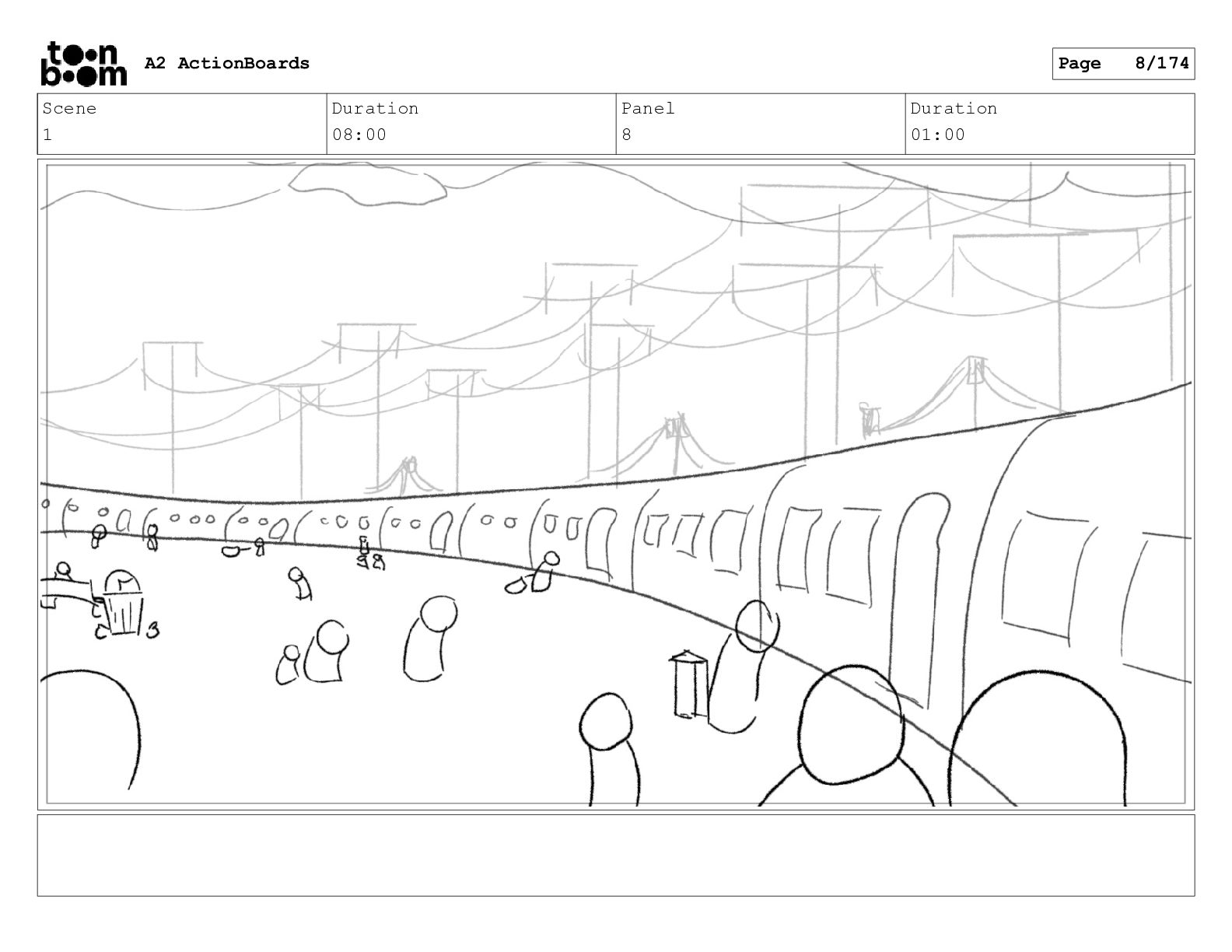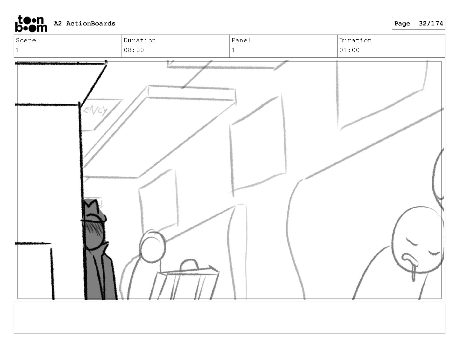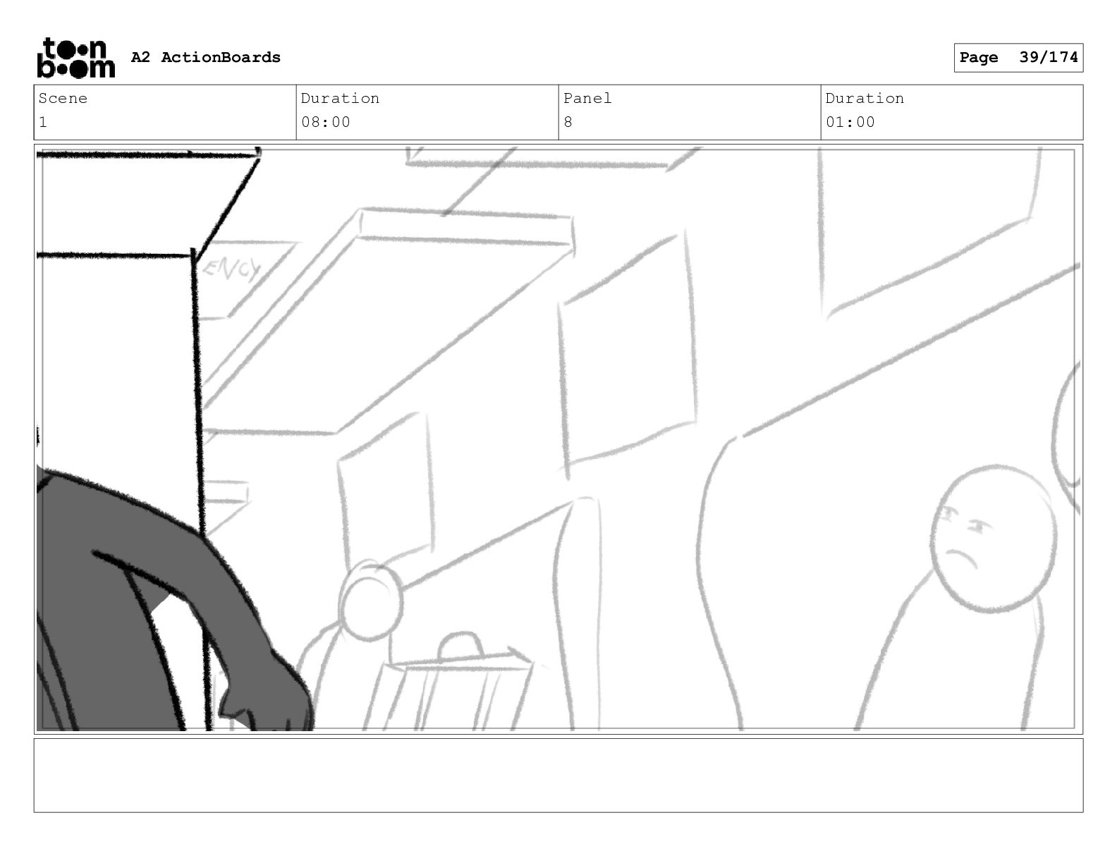 Scene 1 Duration 08:00 Panel 7 Duration 01:00 A2 ActionBoards