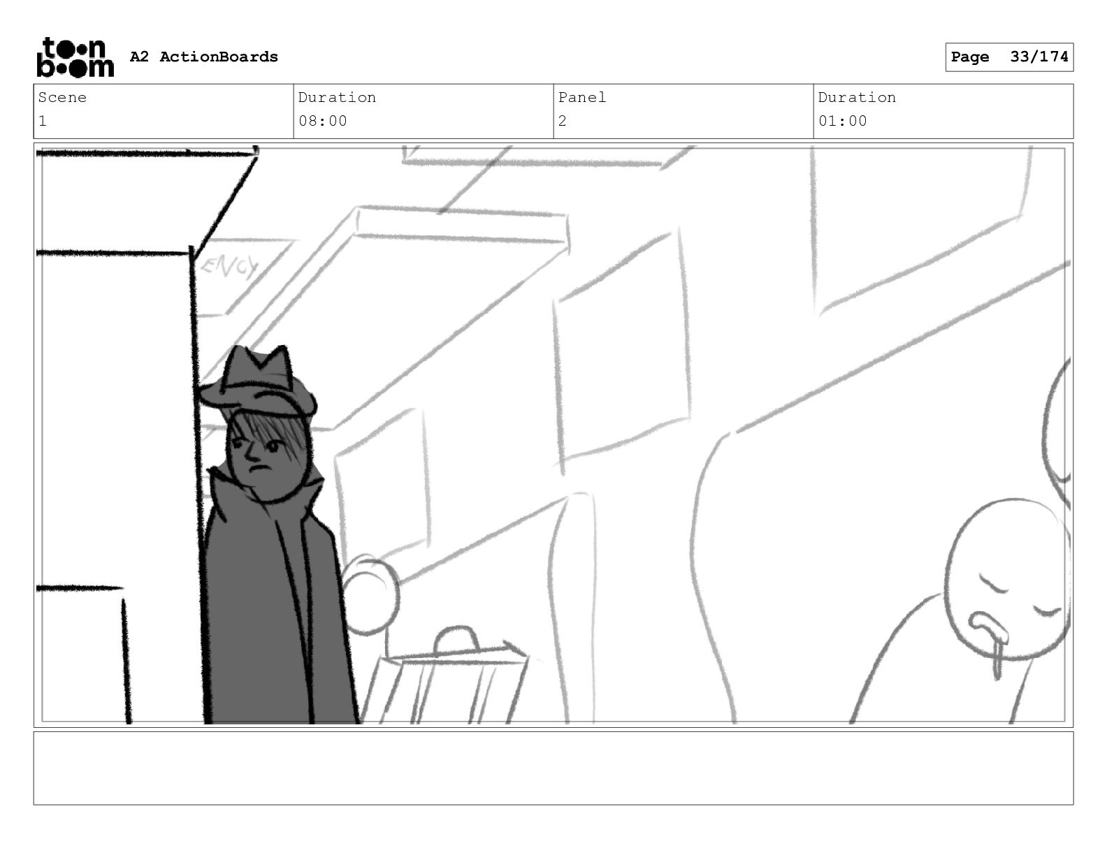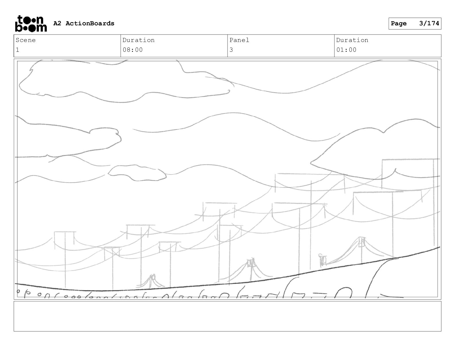 Scene 1 Duration 08:00 Panel 3 Duration 01:00 A2 ActionBoards