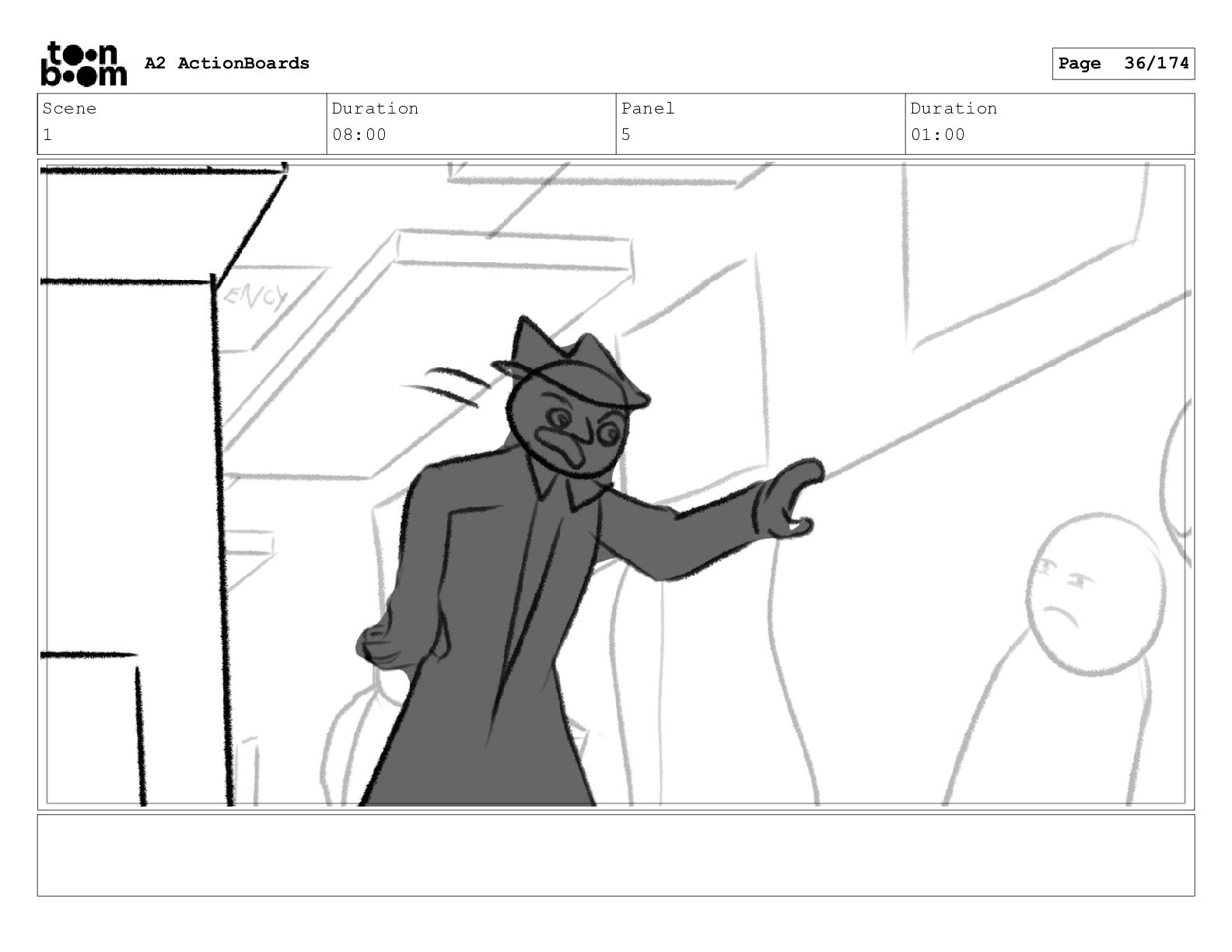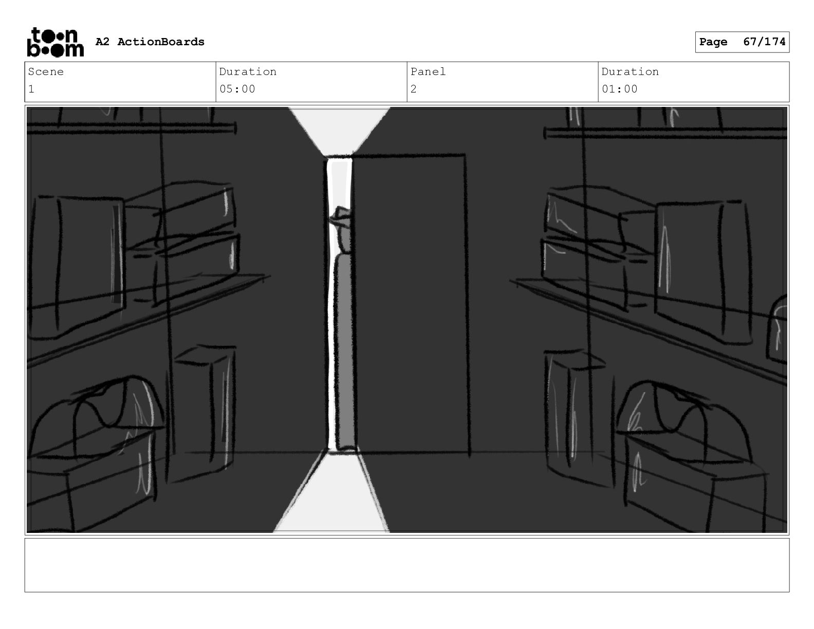 Scene 1 Duration 08:00 Panel 5 Duration 01:00 A2 ActionBoards