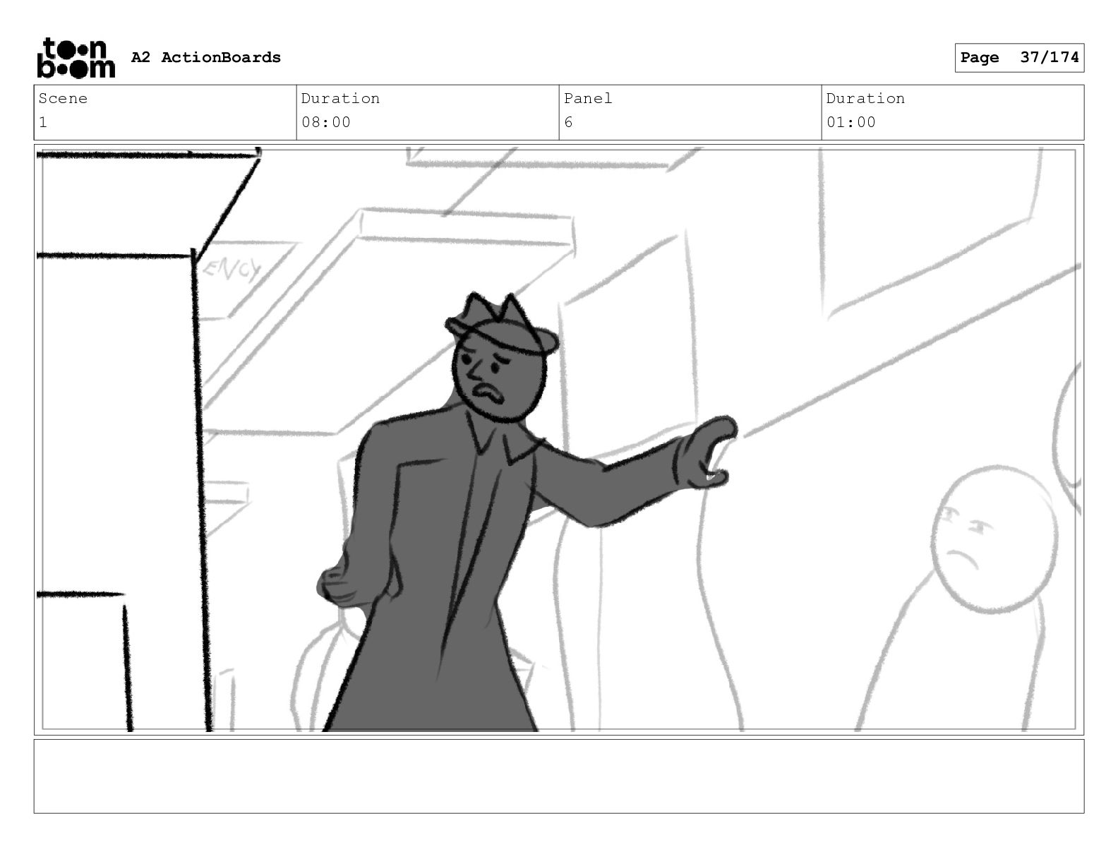 Scene 1 Duration 08:00 Panel 6 Duration 01:00 A2 ActionBoards