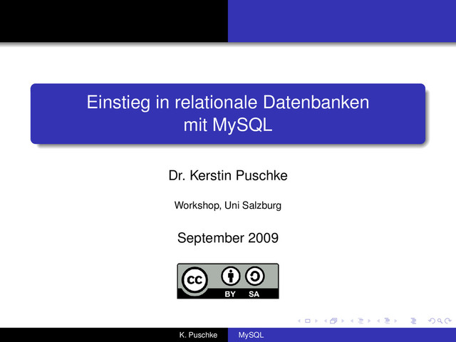 eingebettet in anderen Anwendungen schwedische Firma MySQL AB, jetzt Sun Microsystems, Übernahme durch Oracle kostenlose Community-Version, freie Software (GPL) kostenpflichtige Enterprise-Version K. Puschke MySQL