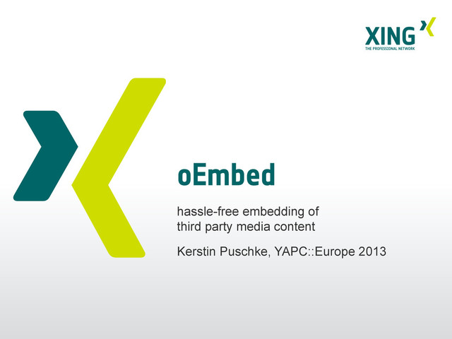 2013 8 http://www.youtube.com/oembed? url=http%3A//youtube.com/watch%3Fv3Dzwk1KvnZxGw& format=json& maxwidth=400&maxheight=200 • not RESTful • needs to know API endpoint • or use discovery – request original url – find oEmbed request in html header – follow up with oEmbed request