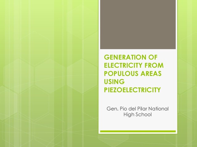 electricity using piezoelectric material such as ceramic transducers. Investigate the efficiency of the small scale prototype of a piezoelectric mat consisting of PZT circular plates (diaphragm) layered on top of latex rubber mat as piezoelectric generator that will be used to provide electrical charge for the 3W LED light bulb. Measure (1) the mechanical stress applied (2) the voltage, and energy.