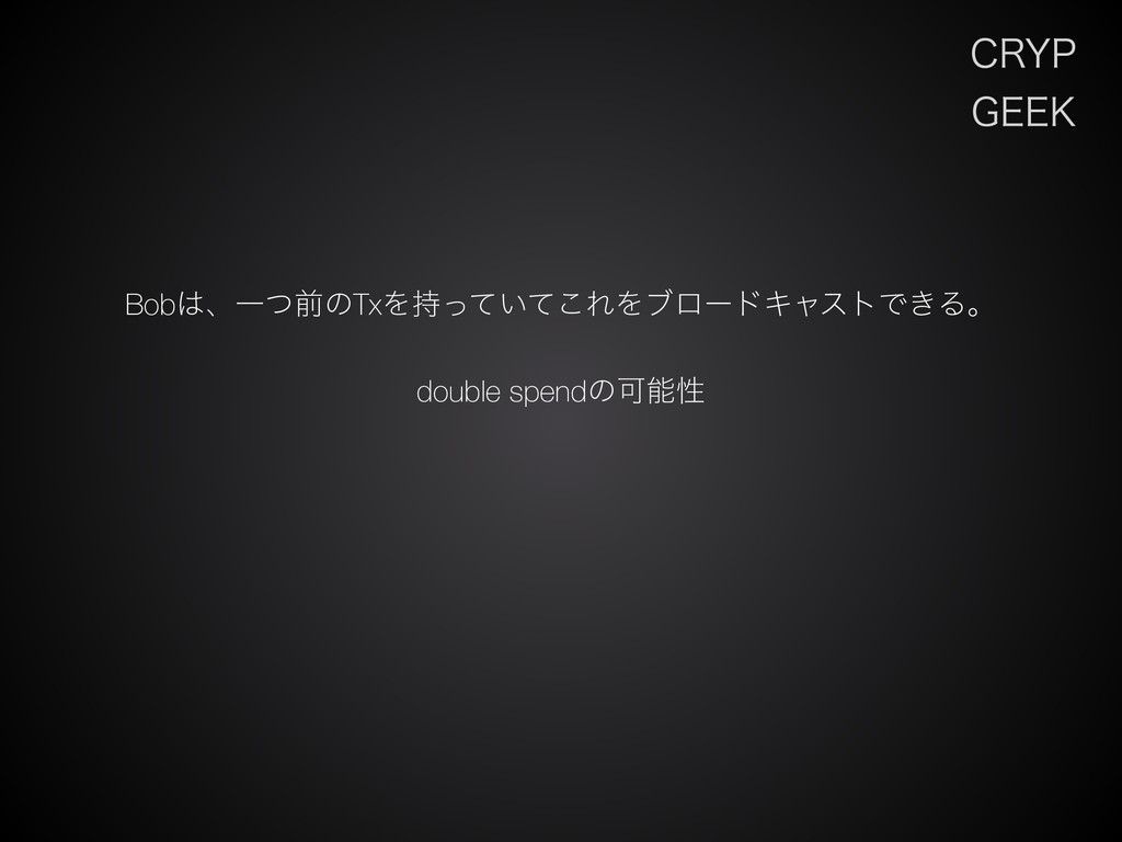 $3:1 (&&, BobɺҰͭલͷTxΛ͍࣋ͬͯͯ͜ΕΛϒϩʔυΩϟετͰ͖Δɻ double spendͷՄೳੑ