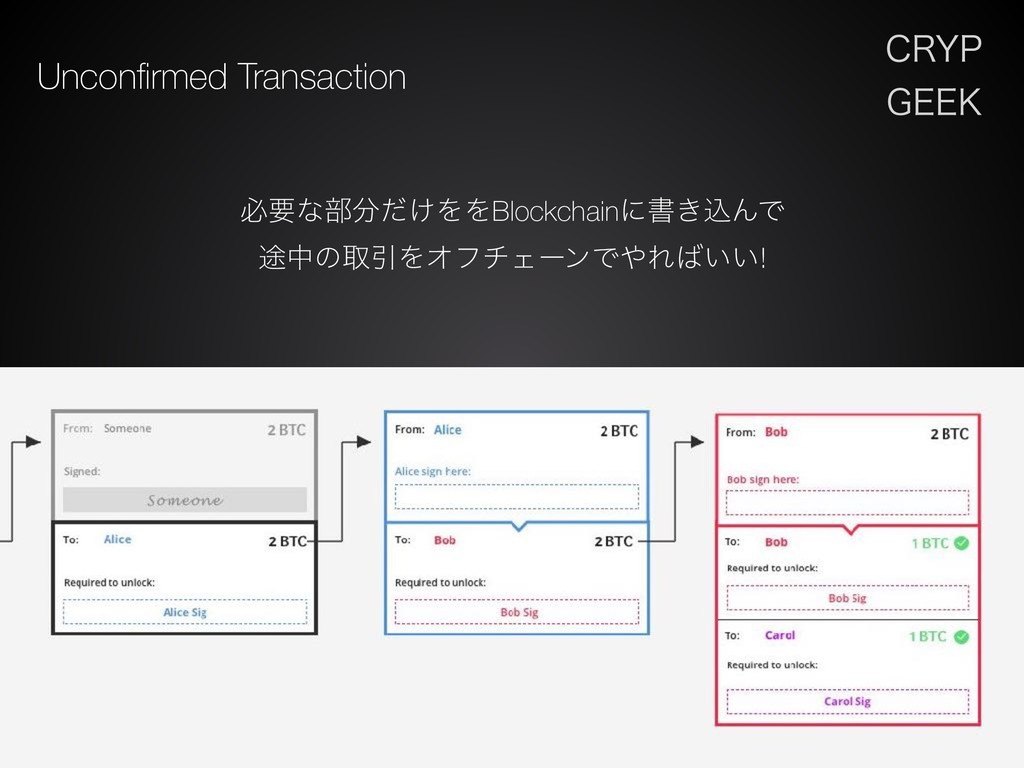 $3:1 (&&, Unconfirmed Transaction ඞཁͳ෦͚ͩΛΛBlockchainʹॻ͖ࠐΜͰ ్தͷऔҾΛΦϑνΣʔϯͰΕ͍͍!