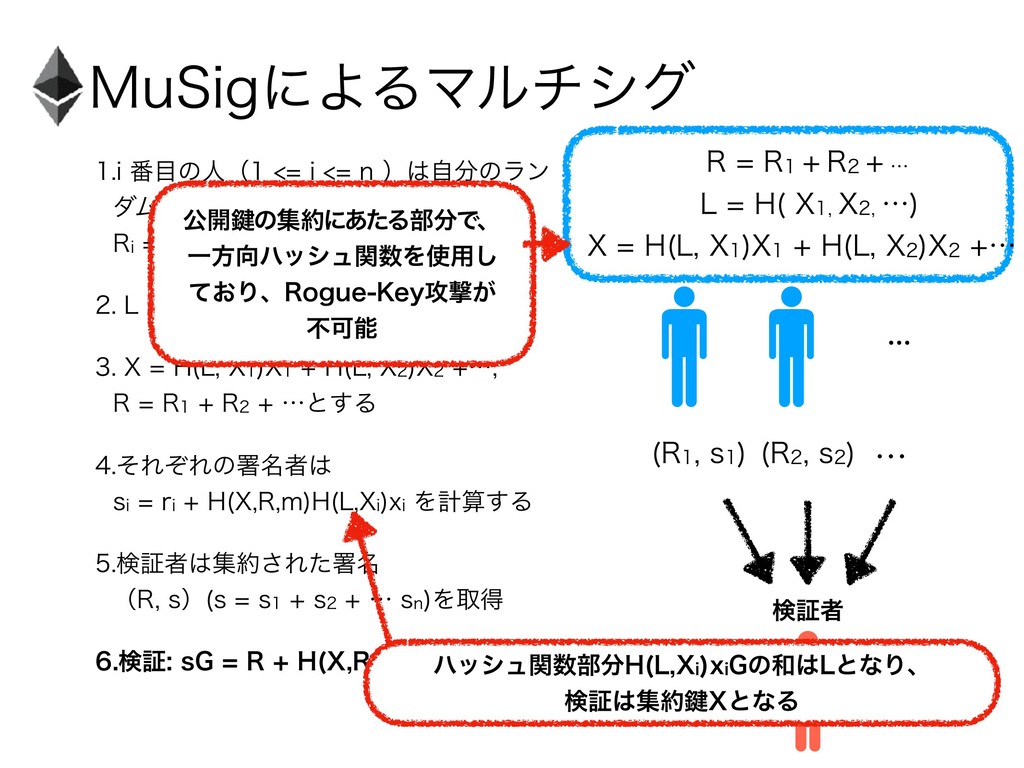 9 ) - 9 9 ʜ 33 3 ʜͱ͢Δ ͦΕͧΕͷॺ໊ऀ TJSJ ) 9 3 N ) - 9J YJΛܭࢉ͢Δ ݕূऀू͞Εͨॺ໊ ʢ3 Tʣ TT T ʜTO Λऔಘ ݕূT(3 ) 9 3 N 9 .V4JHʹΑΔϚϧνγά ʜ 3 T 3 T ݕূऀ ʜ 33 3 ʜ -) 9 9 ʜ 9) - 9 9 ) - 9 9 ʜ ެ։伴ͷूʹ͋ͨΔ෦Ͱɺ ҰํϋογϡؔΛ༻͠ ͓ͯΓɺ3PHVF,FZ߈ܸ͕ ෆՄೳ ϋογϡؔ෦) - 9J YJ(ͷ-ͱͳΓɺ ݕূू伴9ͱͳΔ