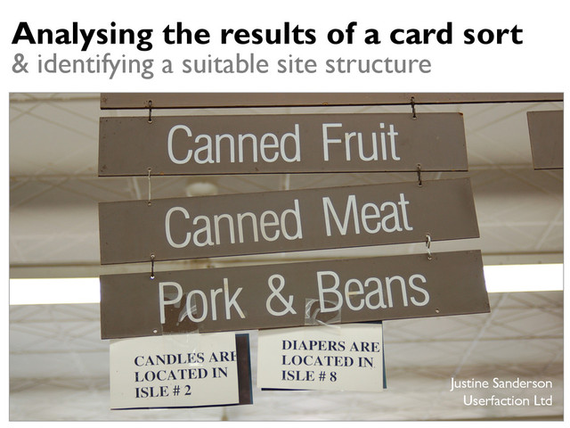 groupings provided by participant 2. Aggregate all the participant-generated category names and sort alphabetically 3. Look for similarities and standardize 4. Check back that the standardized categories contain the same cards 1"