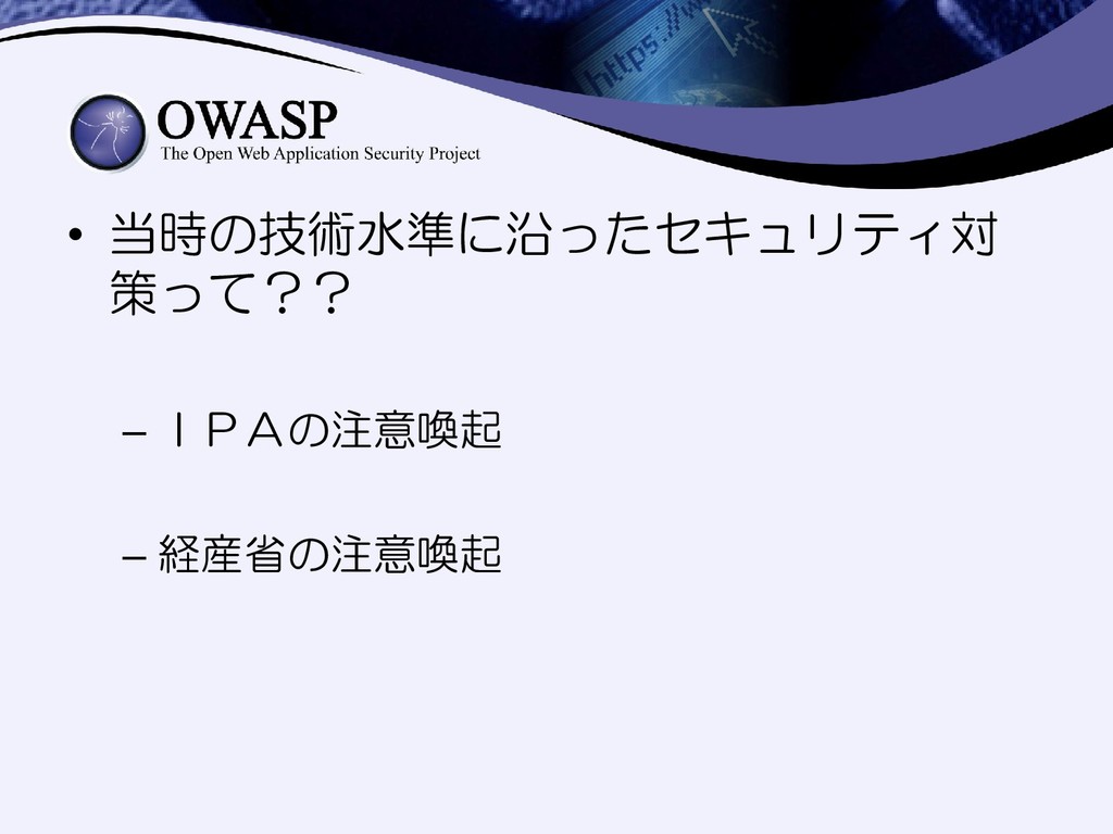 • 当時の技術水準に沿ったセキュリティ対 策って?? – IPAの注意喚起 – 経産省の注意喚起