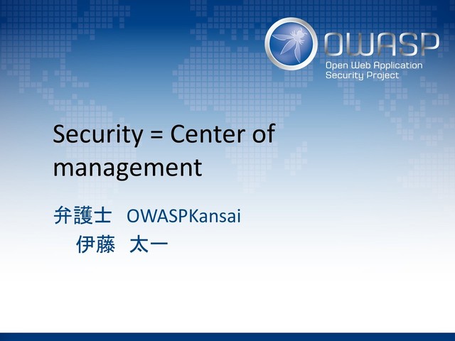 Security = Center of management 弁護士 OWASPKansai 伊藤 太一