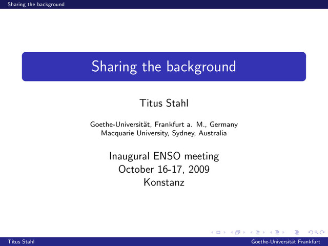 Frankfurt a. M., Germany Macquarie University, Sydney, Australia Inaugural ENSO meeting October 16-17, 2009 Konstanz Titus Stahl Goethe-Universit¨ at Frankfurt