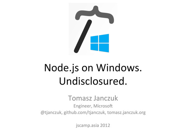 Node.js on Windows. Undisclosured. Tomasz Janczuk Engineer,