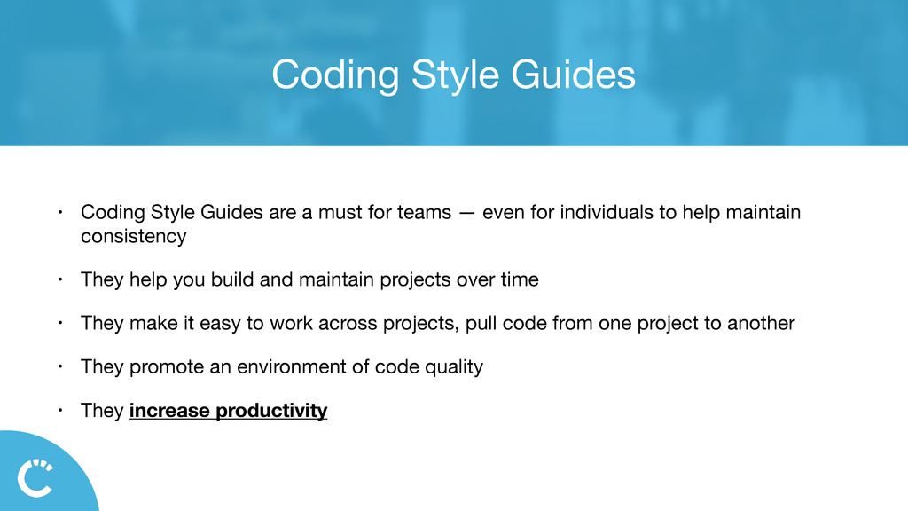 for teams — even for individuals to help maintain consistency • They help you build and maintain projects over time • They make it easy to work across projects, pull code from one project to another • They promote an environment of code quality • They increase productivity