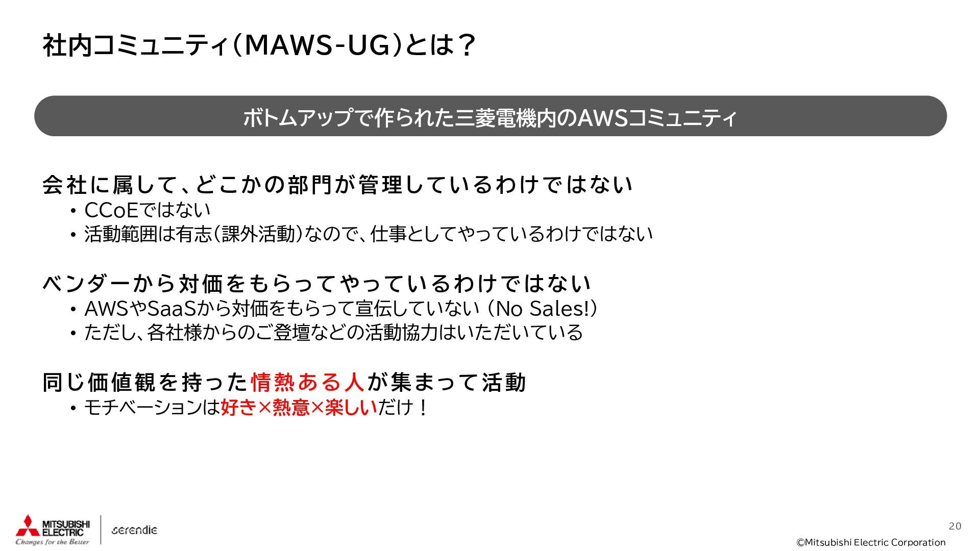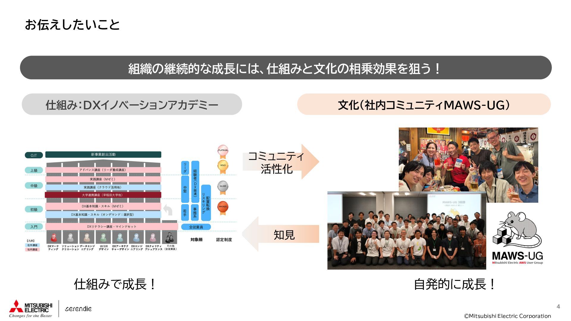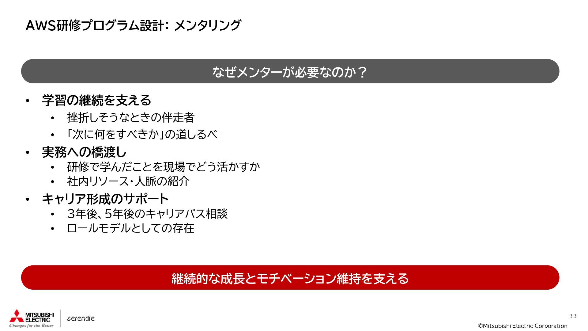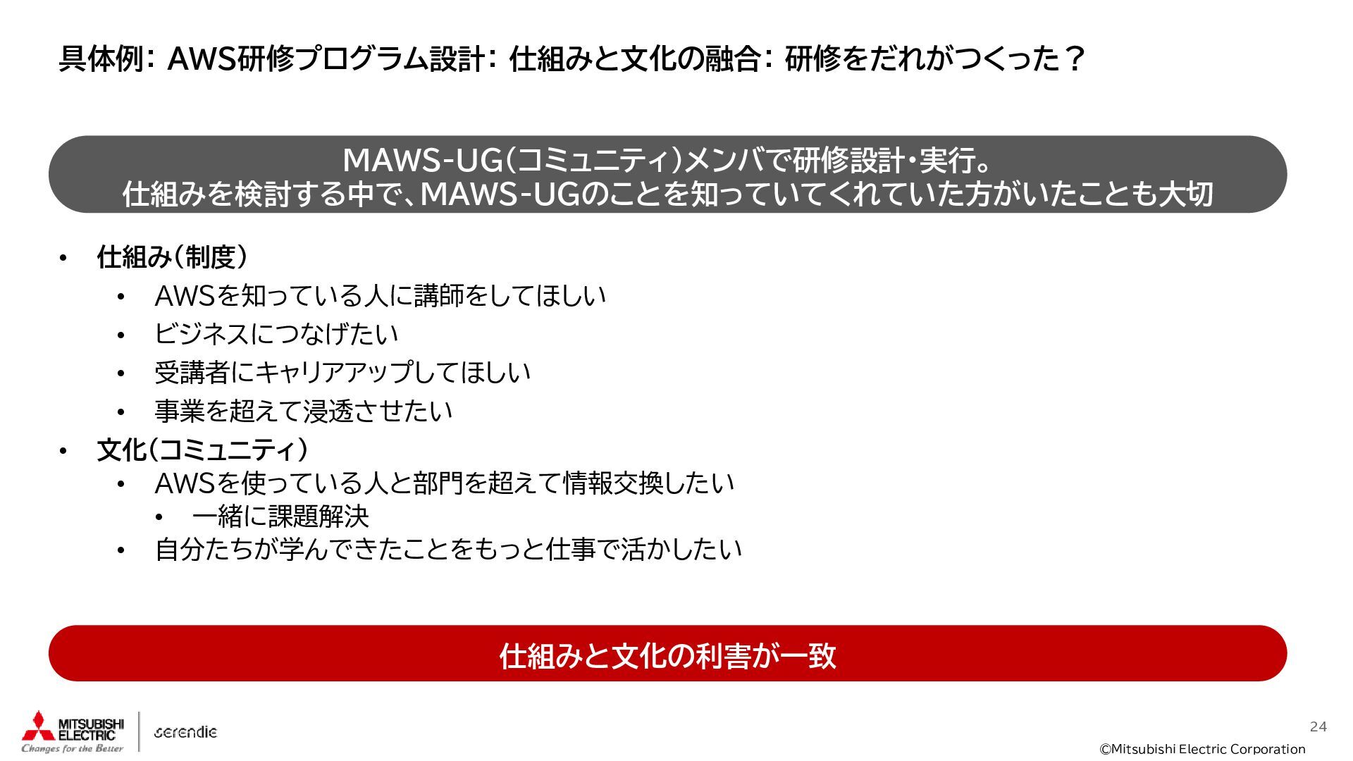 事 • 2012年 入社 • R&D部門で 組み込みH/W, S/Wやサーバインフラなどに携わる • 2023年~ • Serendie 技術基盤 設計・開発・運用 • DX人財育成 AWS関連講座の設計・実行 ス キ ル • Japan AWS Top Engineers 2025 • Japan All AWS Certifications Engineers 2024-2025 • IPA (SW(旧)、NW、DB、ES、SC(旧)) • 認定スクラムマスター、レジスタードプロダクトオーナー • 第一級陸上無線技術士 趣 味 • 子どもと遊ぶ、 妻とコーヒーを飲む • フィットネス 自己紹介:辻尾良太 2
