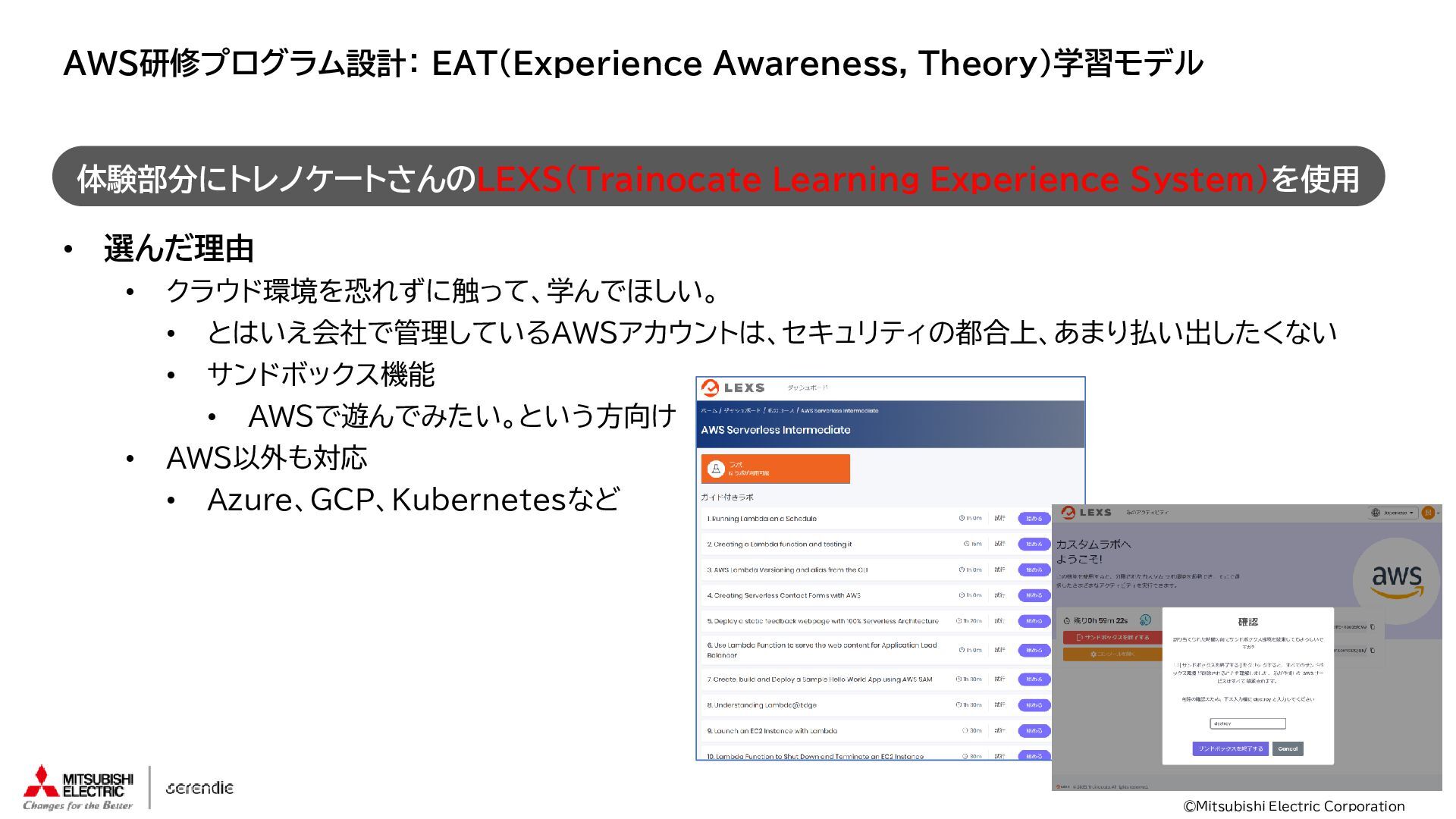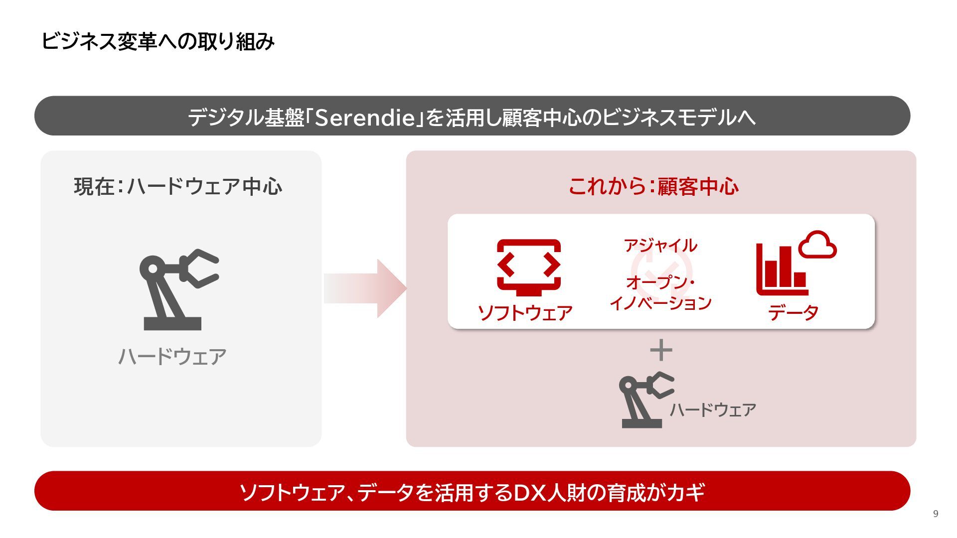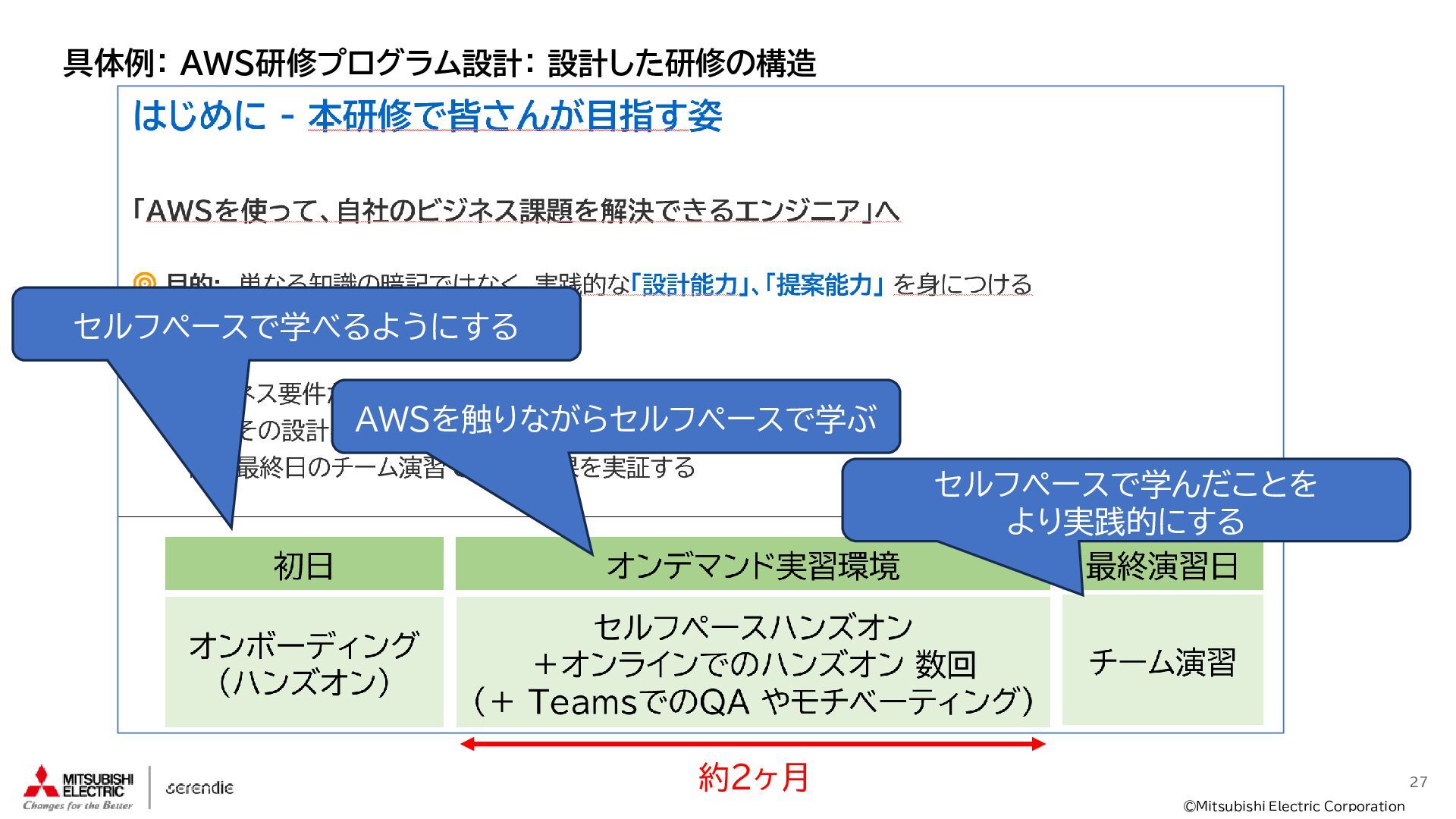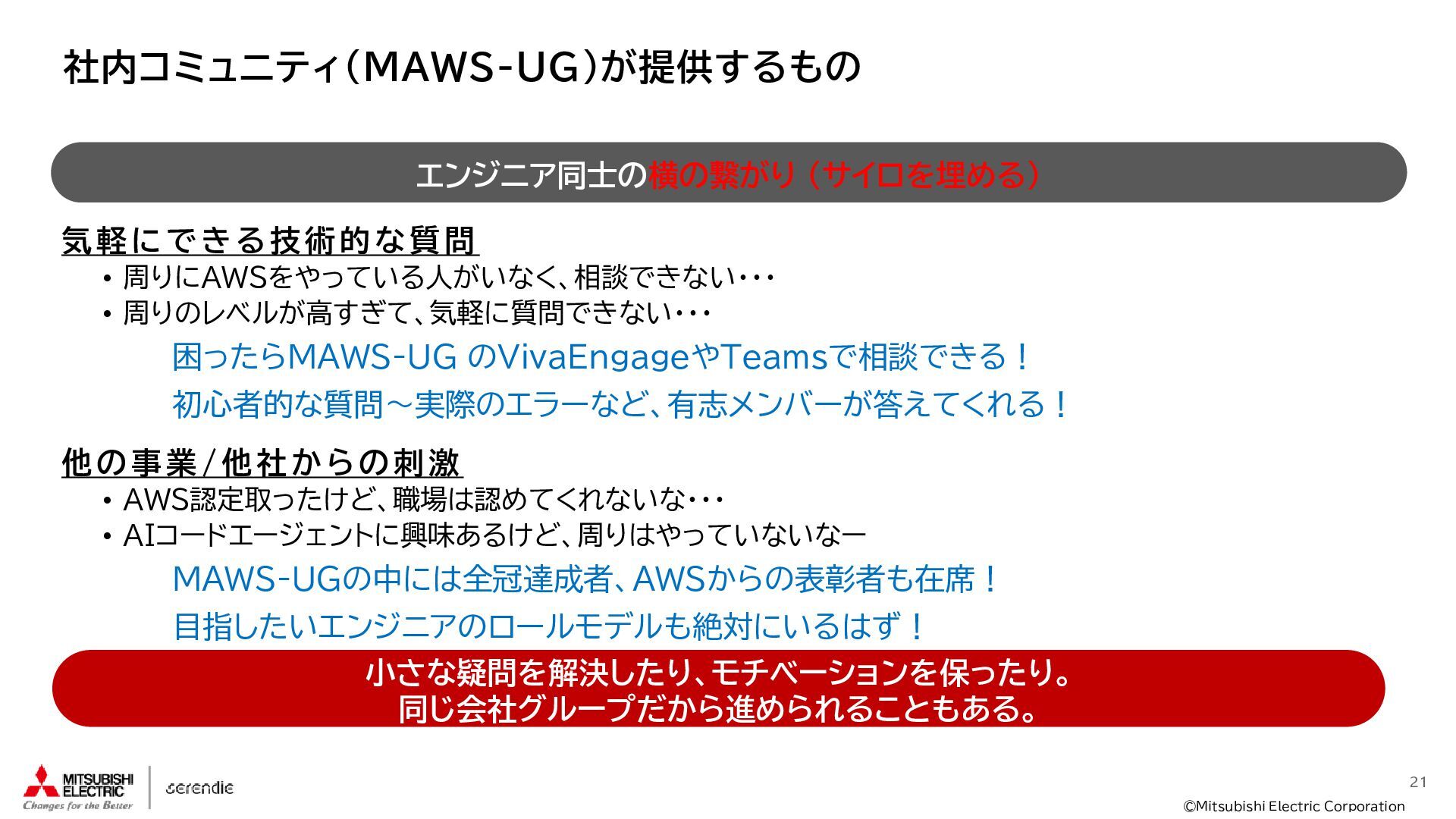 事 • 2012年 入社 • R&D部門で 組み込みH/W, S/Wやサーバインフラなどに携わる • 2023年~ • Serendie 技術基盤 設計・開発・運用 • DX人財育成 AWS関連講座の設計・実行 ス キ ル • Japan AWS Top Engineers 2025 • Japan All AWS Certifications Engineers 2024-2025 • IPA (SW(旧)、NW、DB、ES、SC(旧)) • 認定スクラムマスター、レジスタードプロダクトオーナー • 第一級陸上無線技術士 趣 味 • 子どもと遊ぶ、 妻とコーヒーを飲む • フィットネス 自己紹介:辻尾良太 2