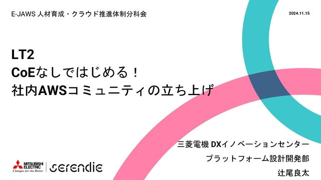 ©Mitsubishi Electric Corporation 【社外秘】 2024.11.15 LT2 CoEなしではじめる! 社内AWSコミュニティの立ち上げ 三菱電機 DXイノベーションセンター
