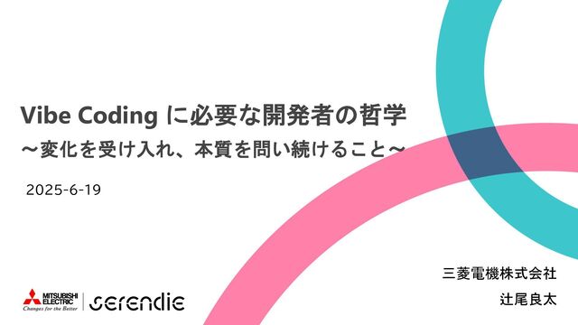 ©Mitsubishi Electric Corporation 【社外秘】 Vibe Coding に必要な開発者の哲学 ~変化を受け入れ、本質を問い続けること~ 三菱電機株式会社 辻尾良太