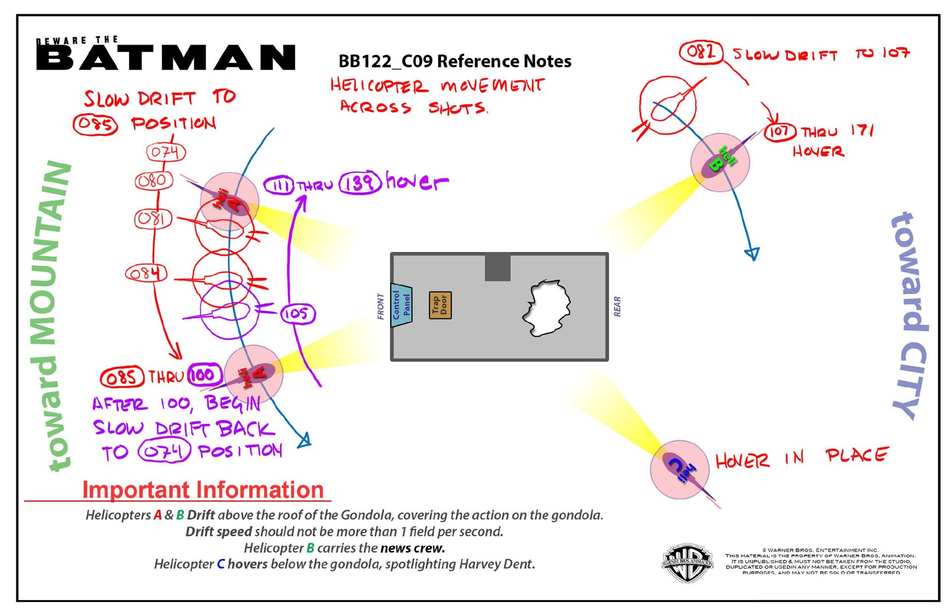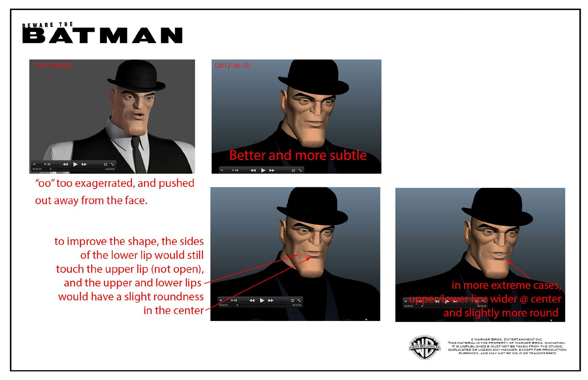 Examples of my draw overs for key scenes, staging mark ups and character phoneme and expression sheets. From my time as Animation Supervisor on "Beware the Batman".