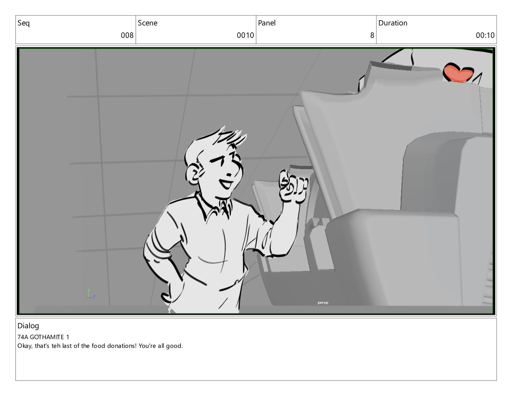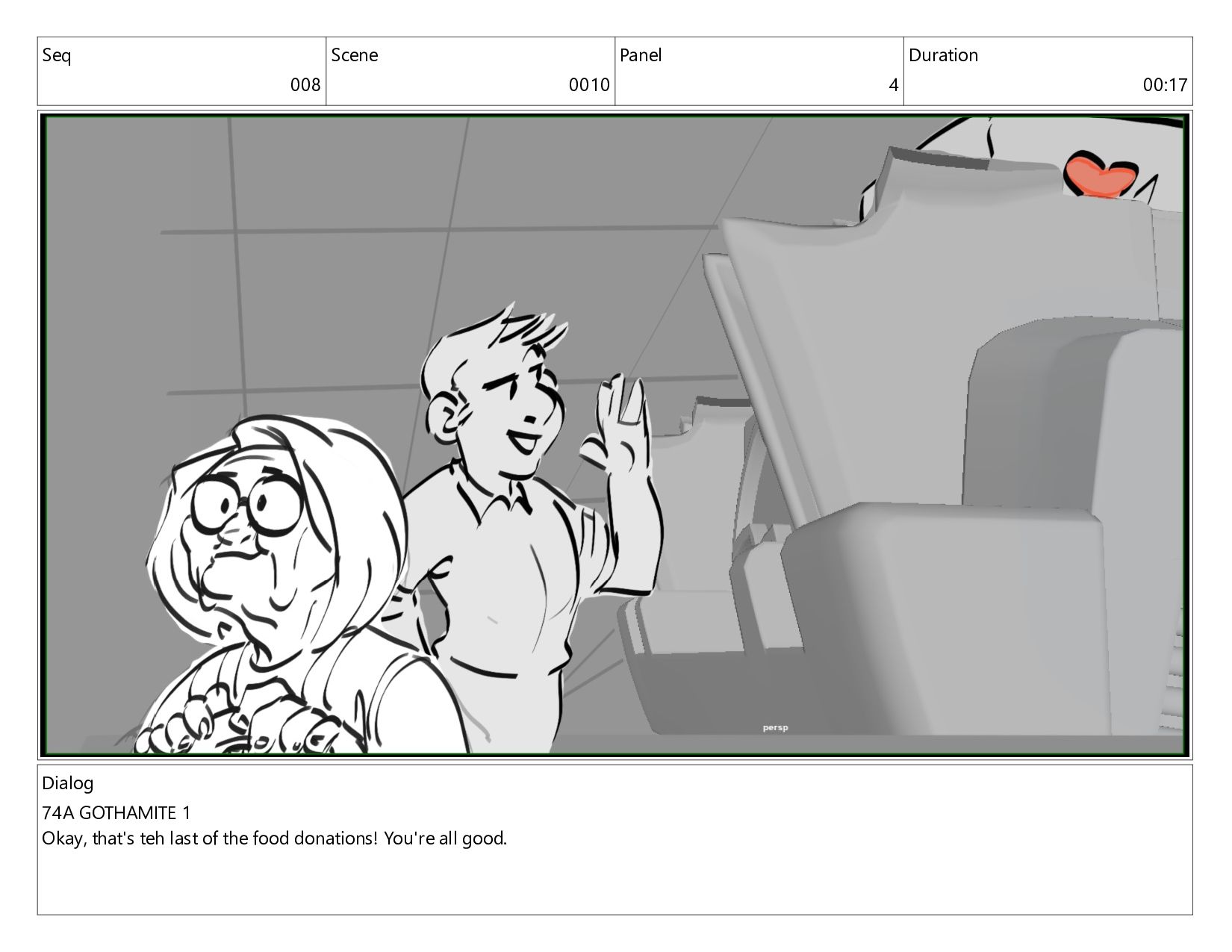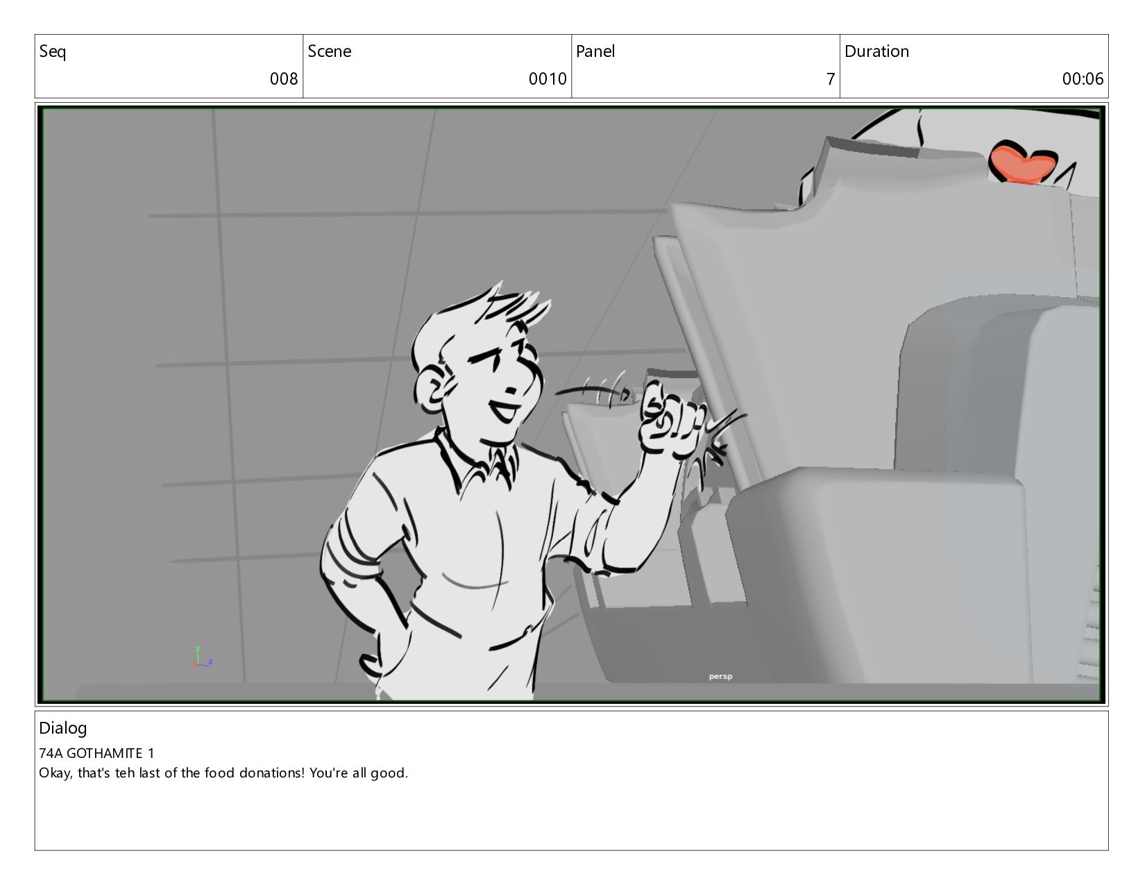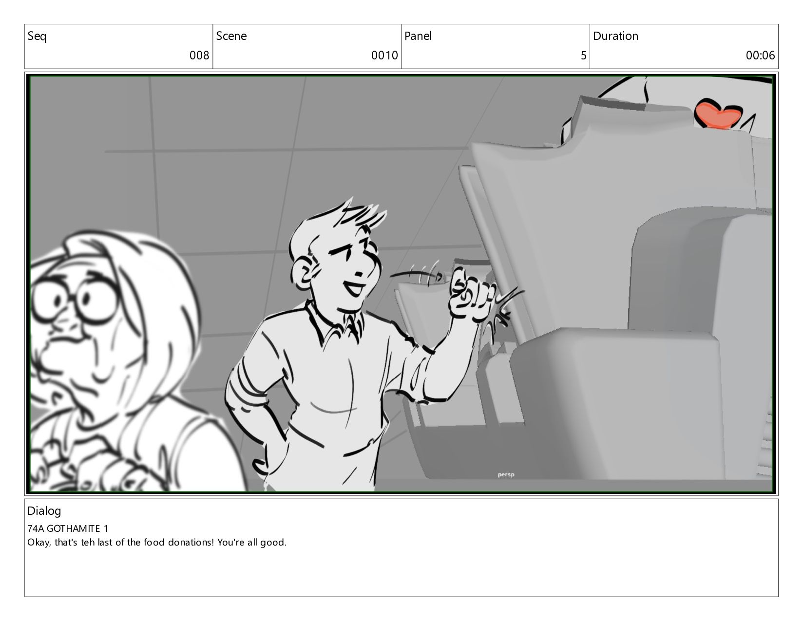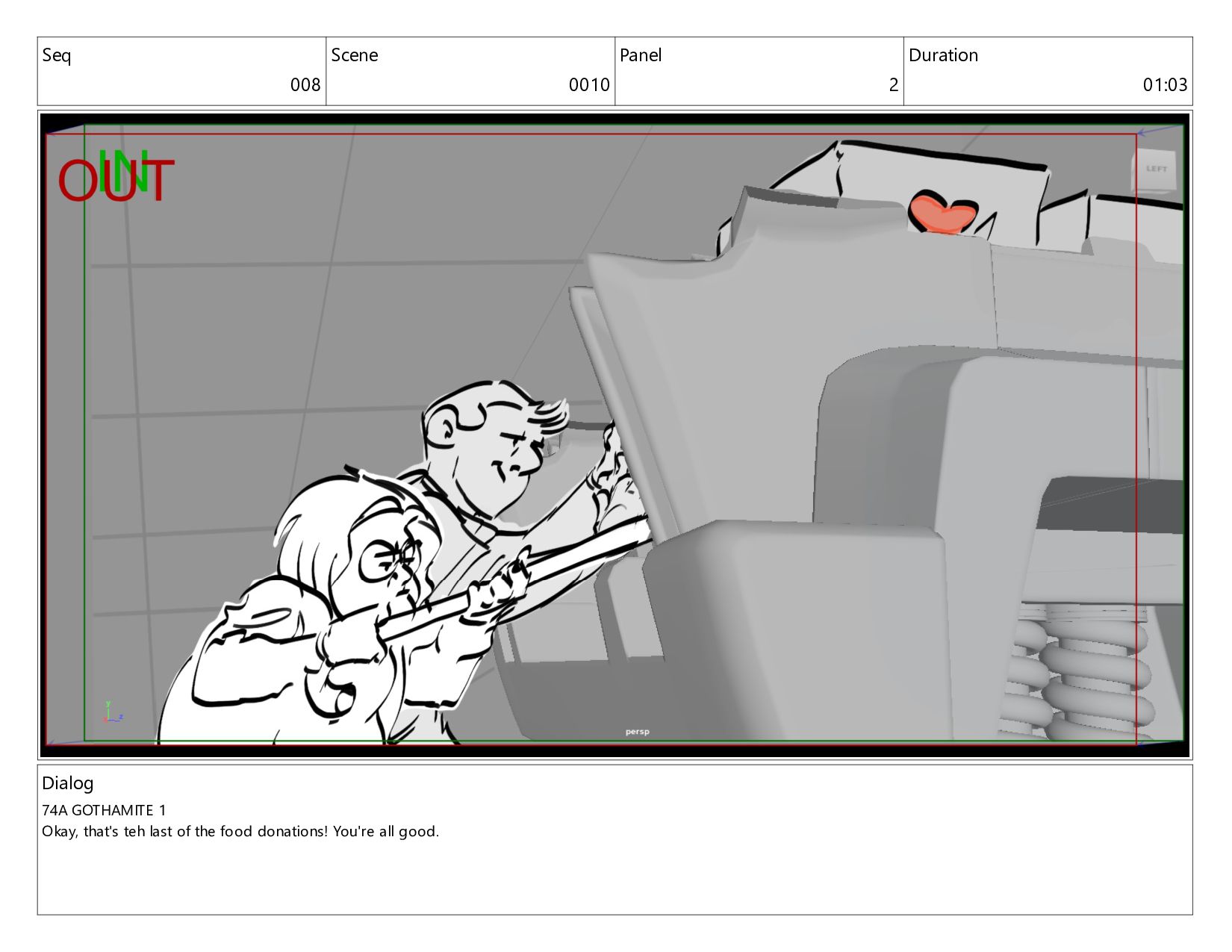 "Lend Me Your Volunteer" - revision boards for scene, focusing on new dialog and building out performance on characters.