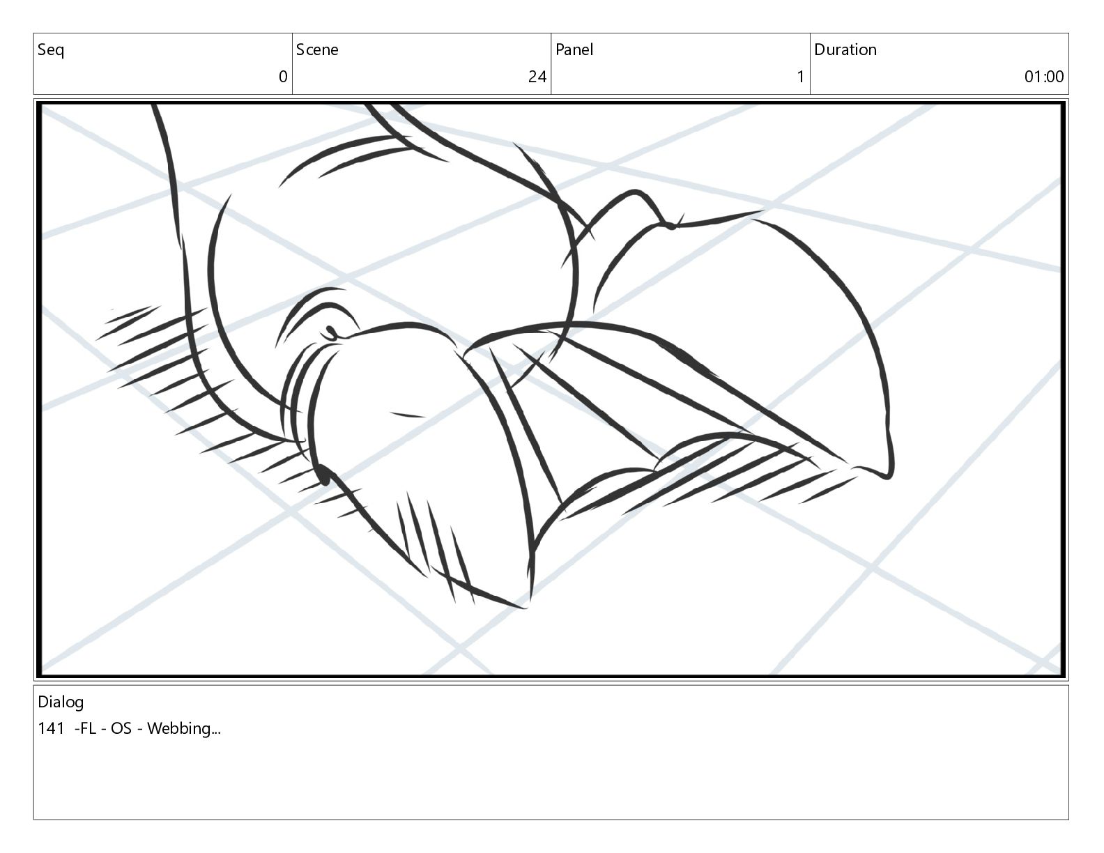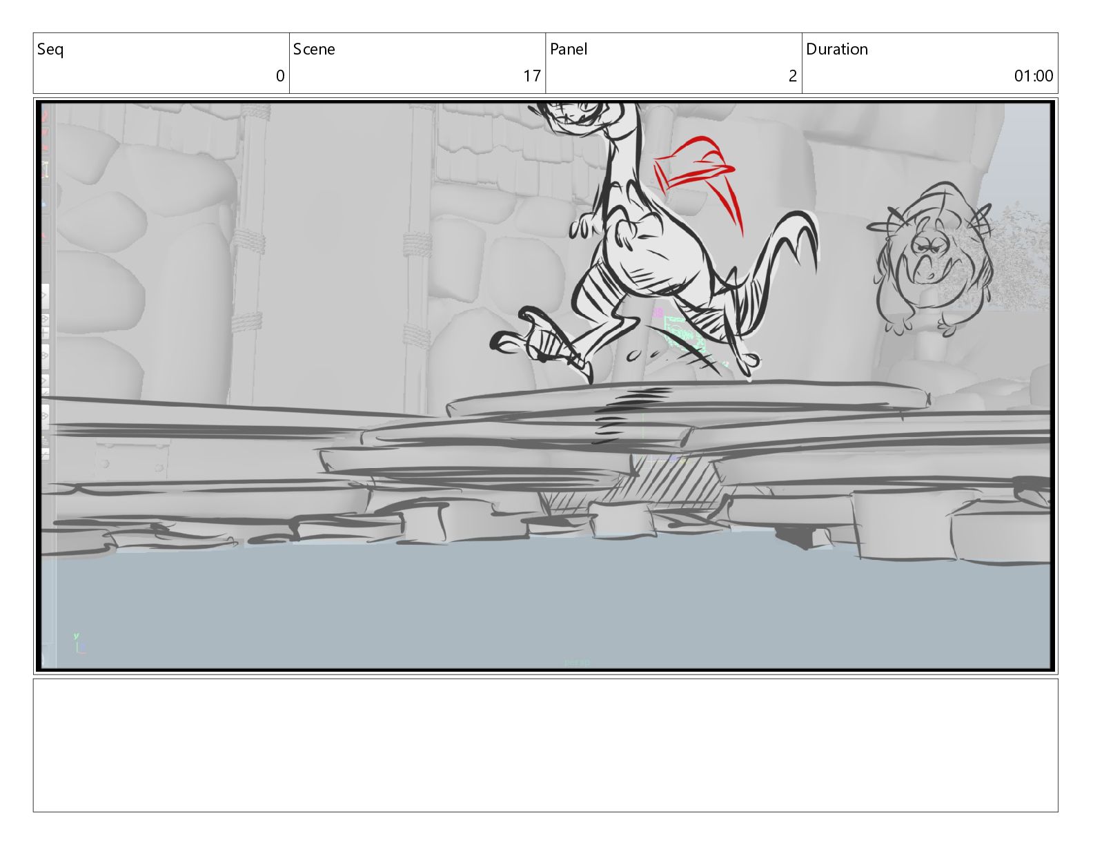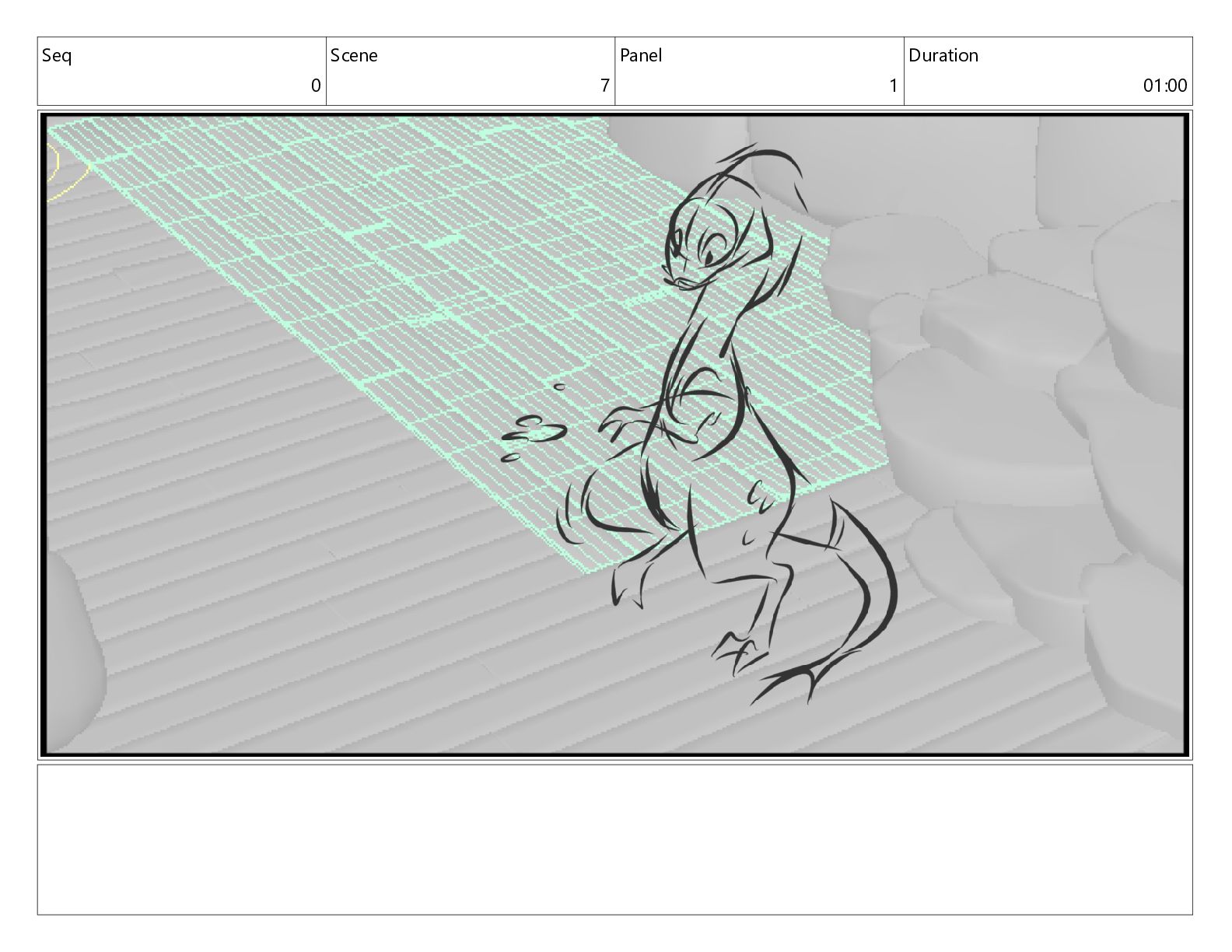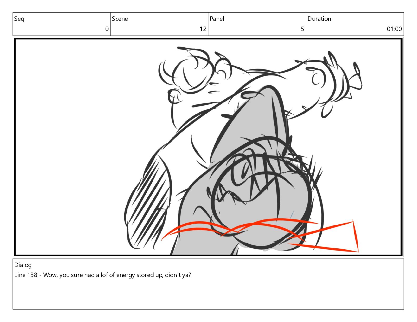 Rough storyboards for a sequence of the episode "The Next Big Sting", revealing the SpeedStinger can run across water.