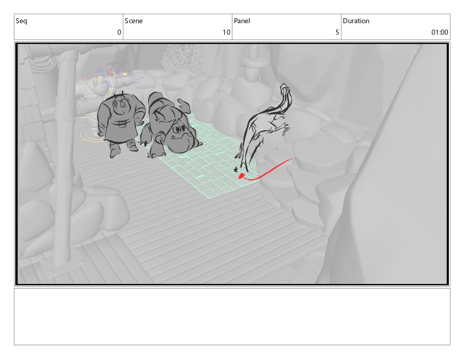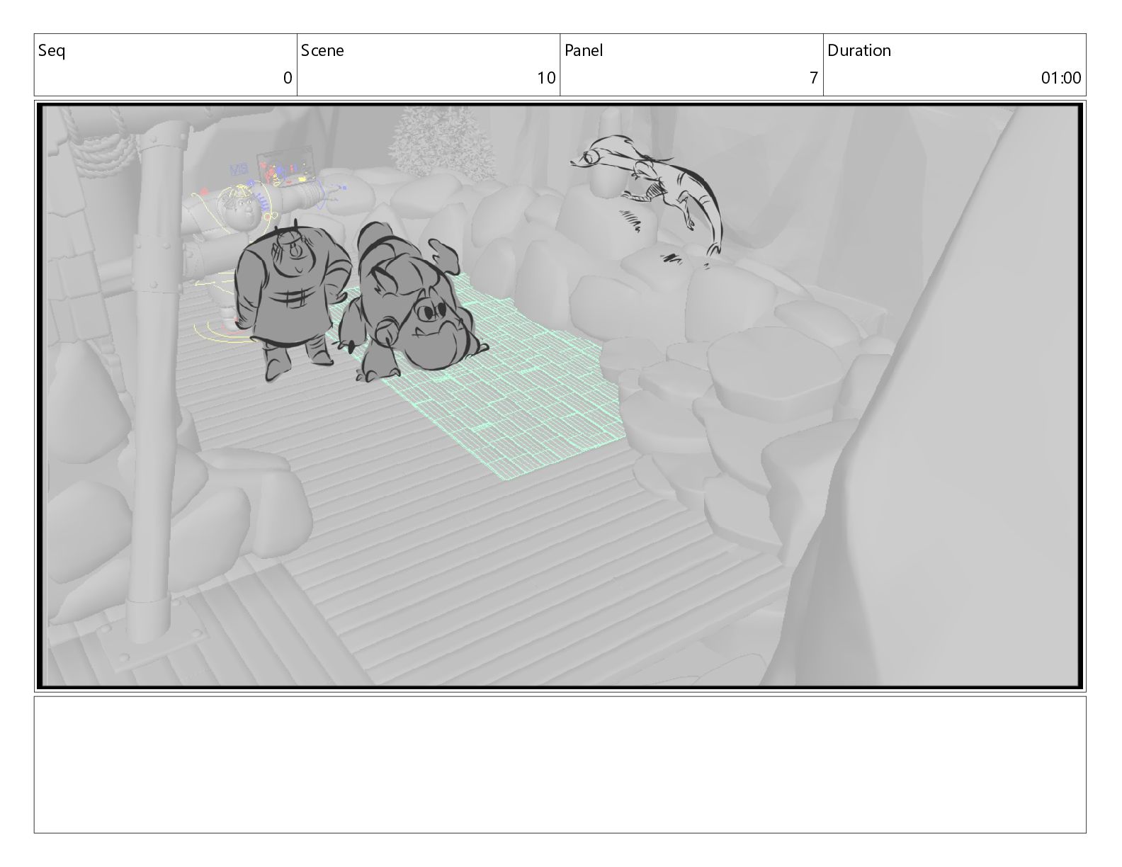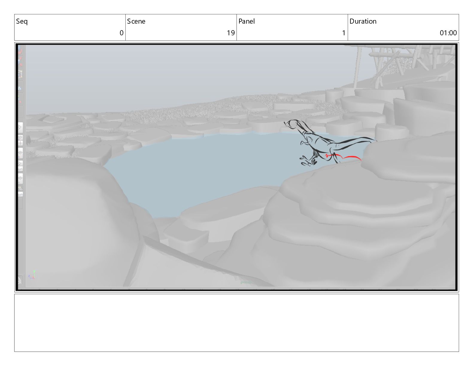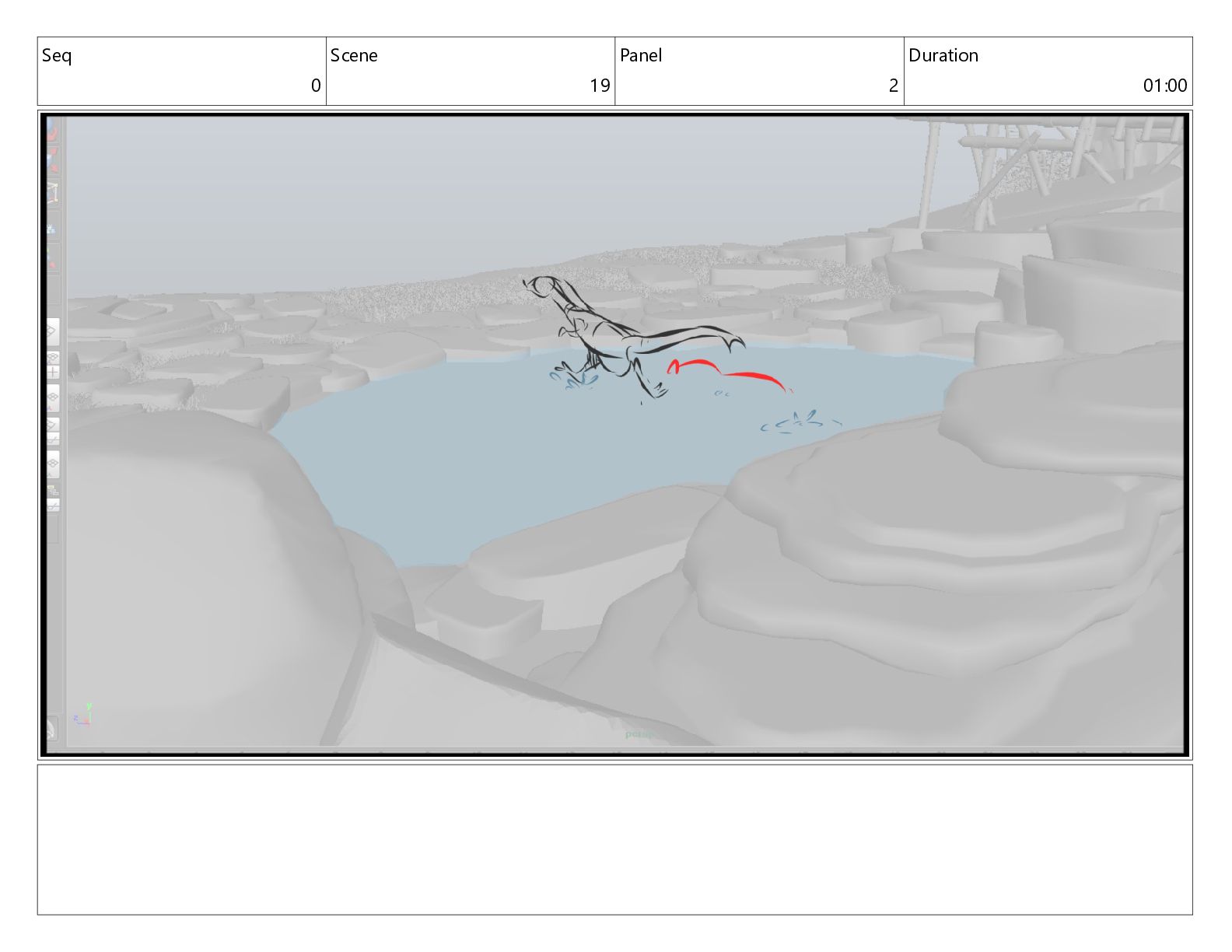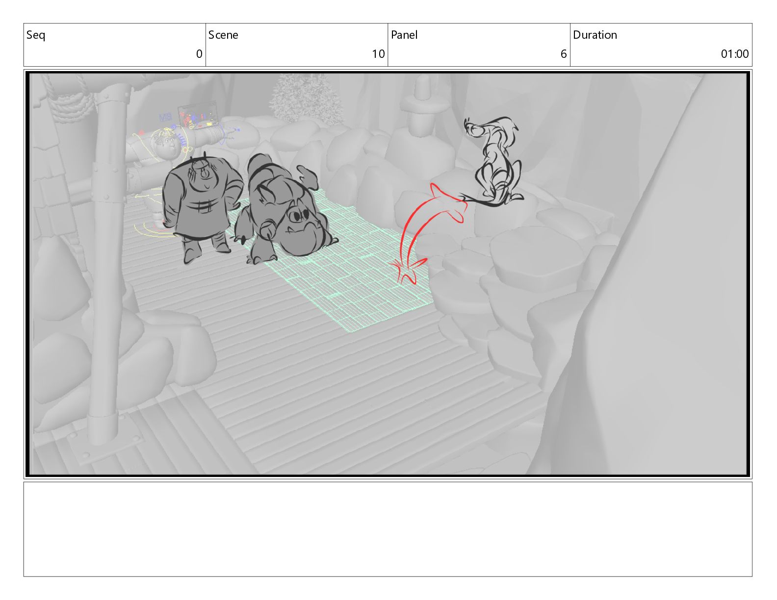 Rough storyboards for a sequence of the episode "The Next Big Sting", revealing the SpeedStinger can run across water.