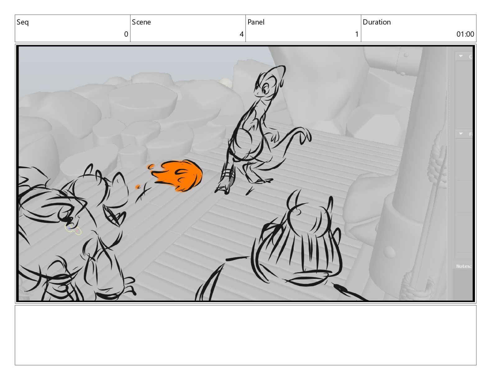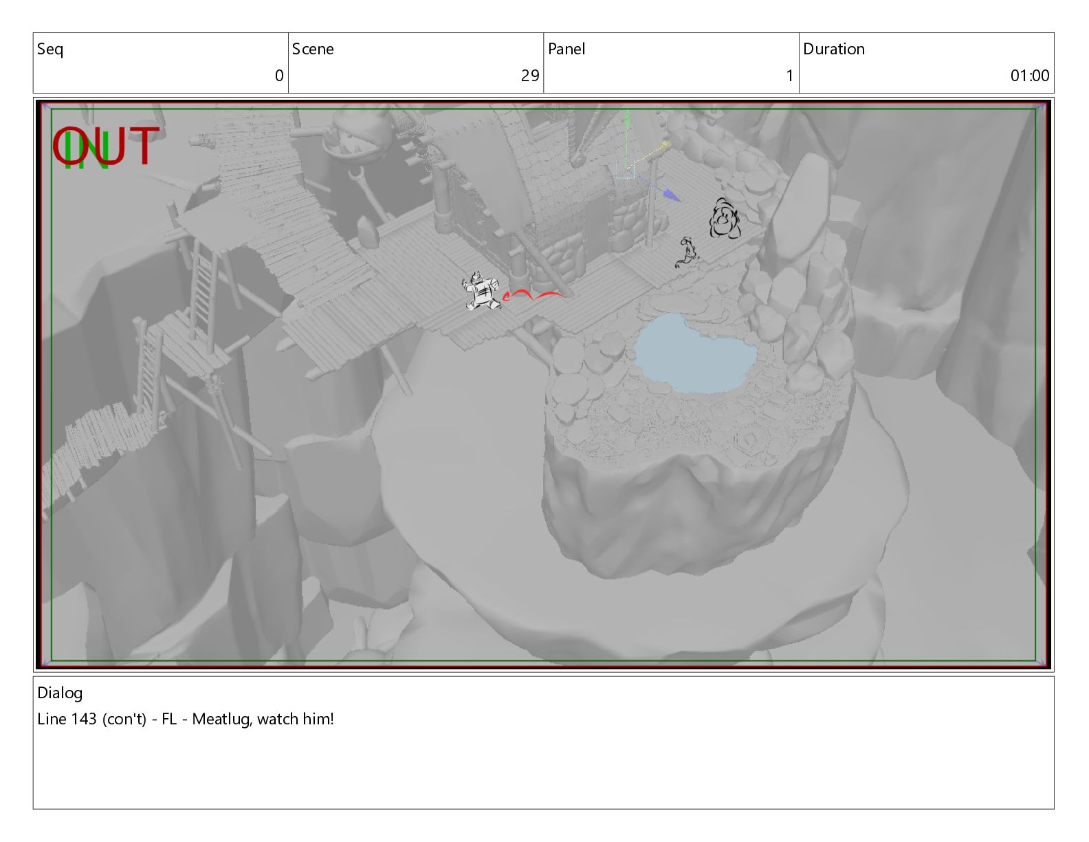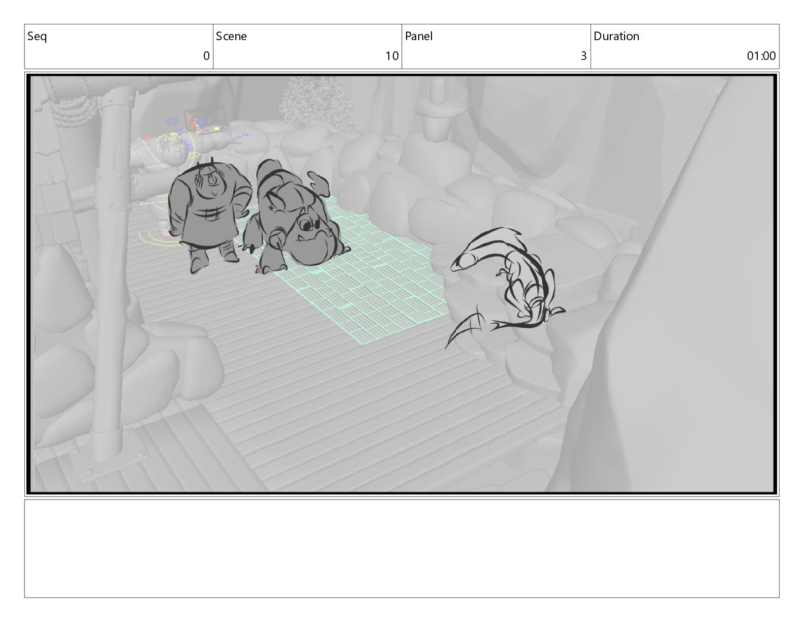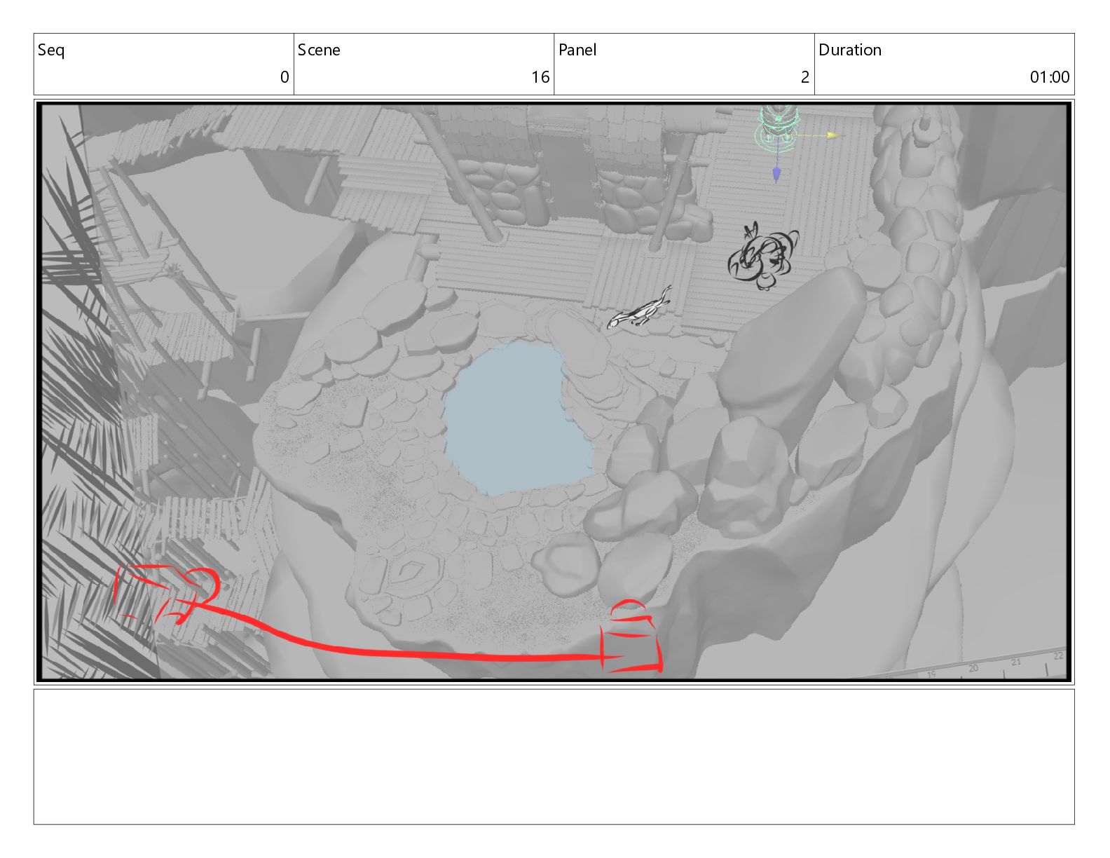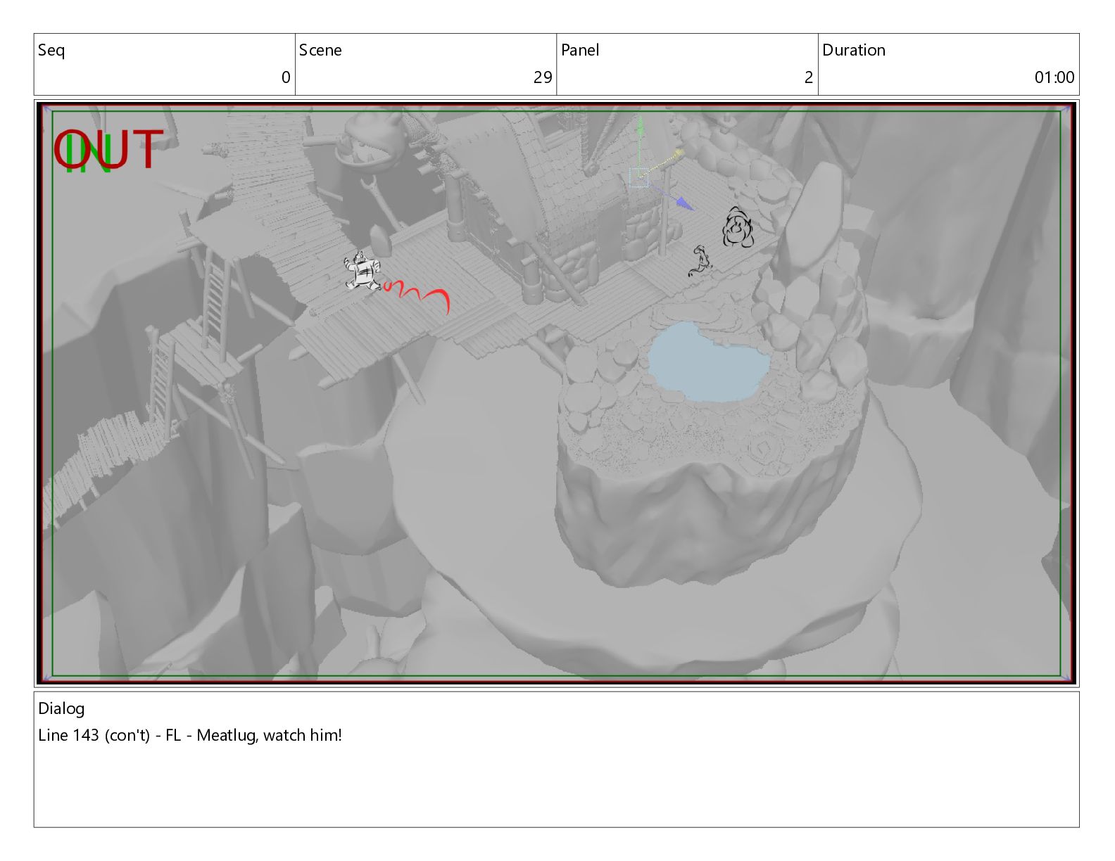 Rough storyboards for a sequence of the episode "The Next Big Sting", revealing the SpeedStinger can run across water.