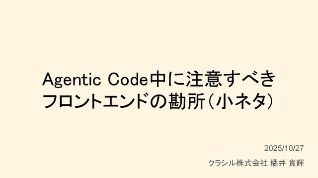 Agentic Code中に注意すべき フロントエンドの勘所(小ネタ) 2025/10/27 クラシル株式会社 橘井 貴輝