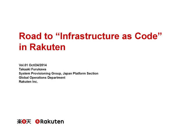 Road to “Infrastructure as Code” in Rakuten Vol.01 Oct/24/2014 Takaaki