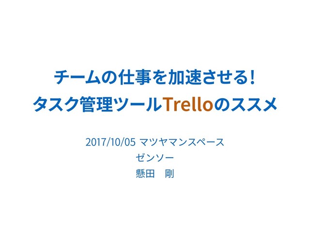 2017/10/05に松山で開催したTrello勉強会の資料をアップし忘れていたので掲載。