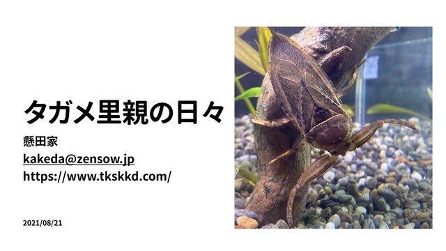 里山暮らし研究所さんのタガメ里親活動に参加したときの飼育のレポート用に作成した資料。2021/08/21発表(以降若干改変あり)