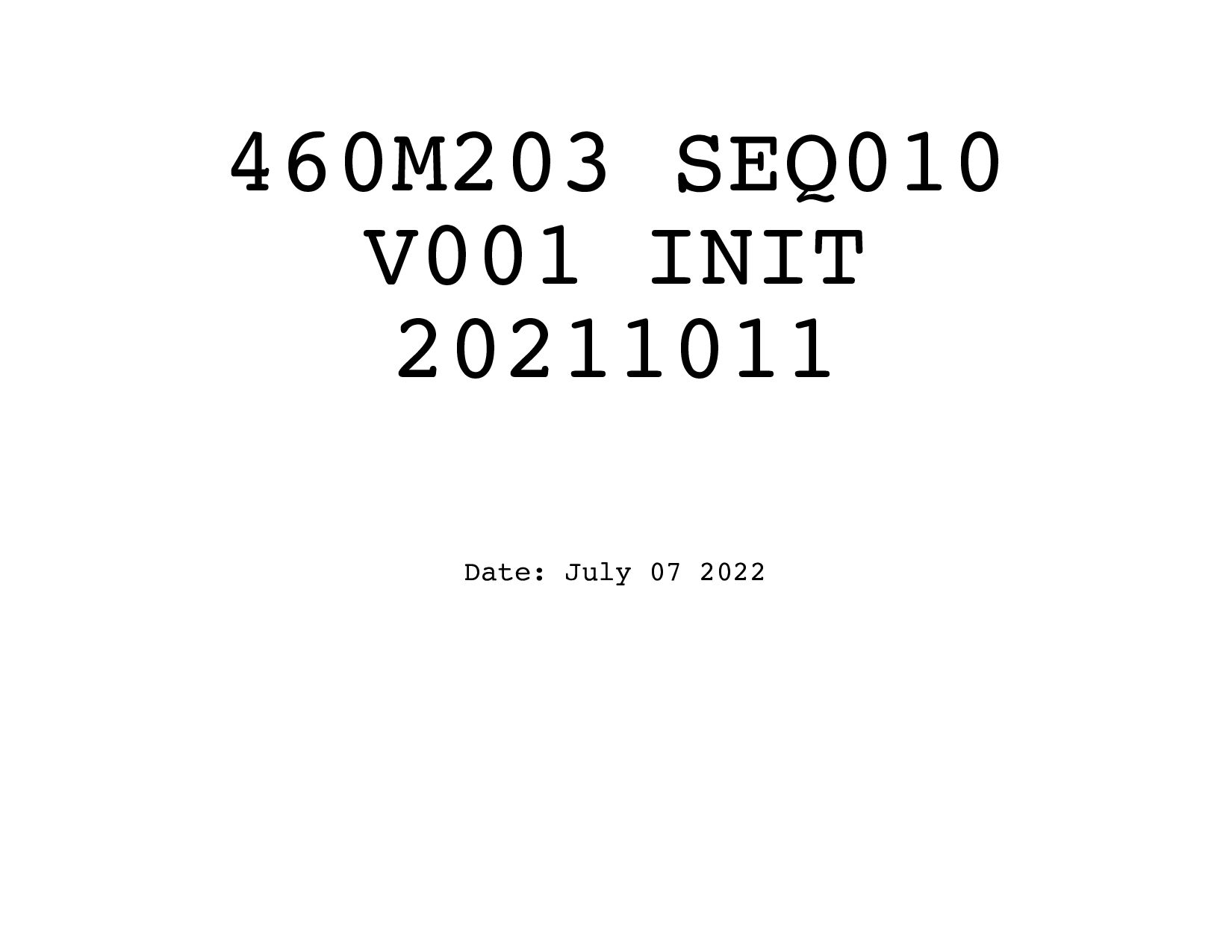 460M203 SEQ010 V001 INIT 20211011 Date: July 07 2022