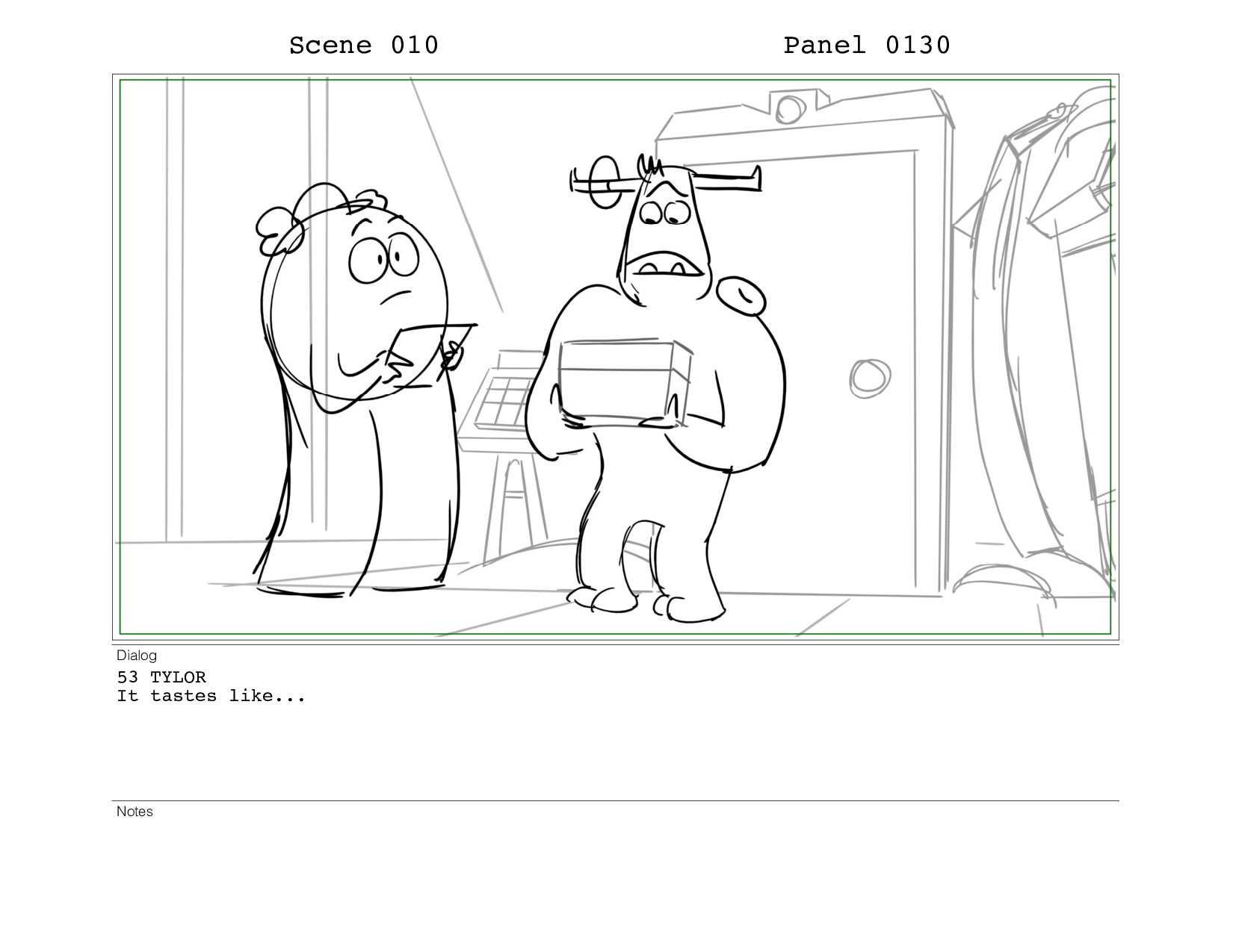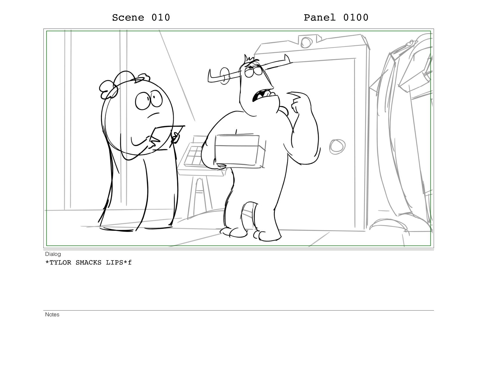 Scene 010 Panel 0100 Dialog *TYLOR SMACKS LIPS*f Notes