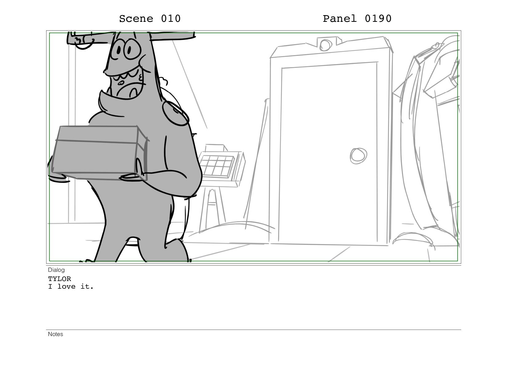 Scene 010 Panel 0190 Dialog TYLOR I love it. Notes