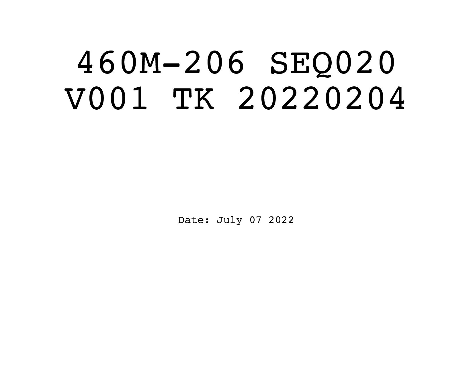 460M-206 SEQ020 V001 TK 20220204 Date: July 07 2022