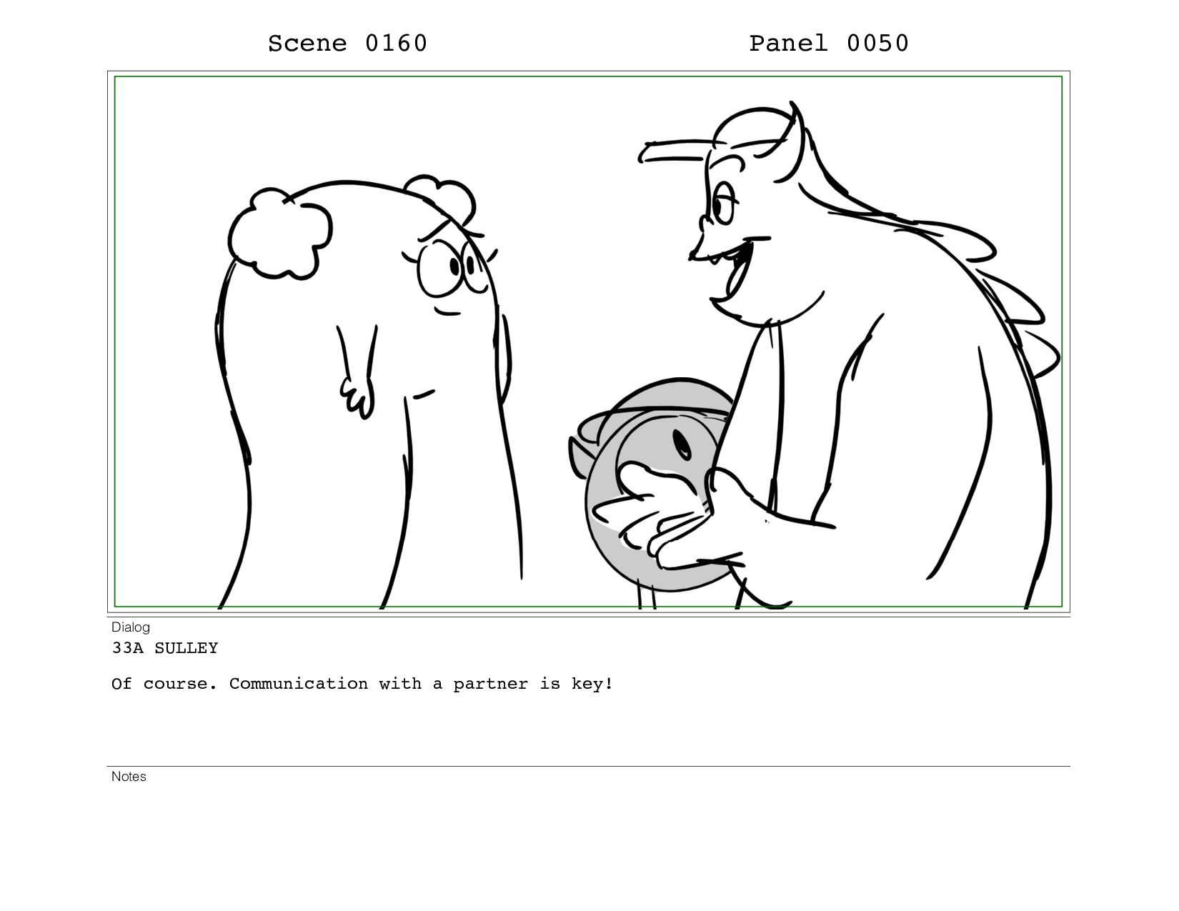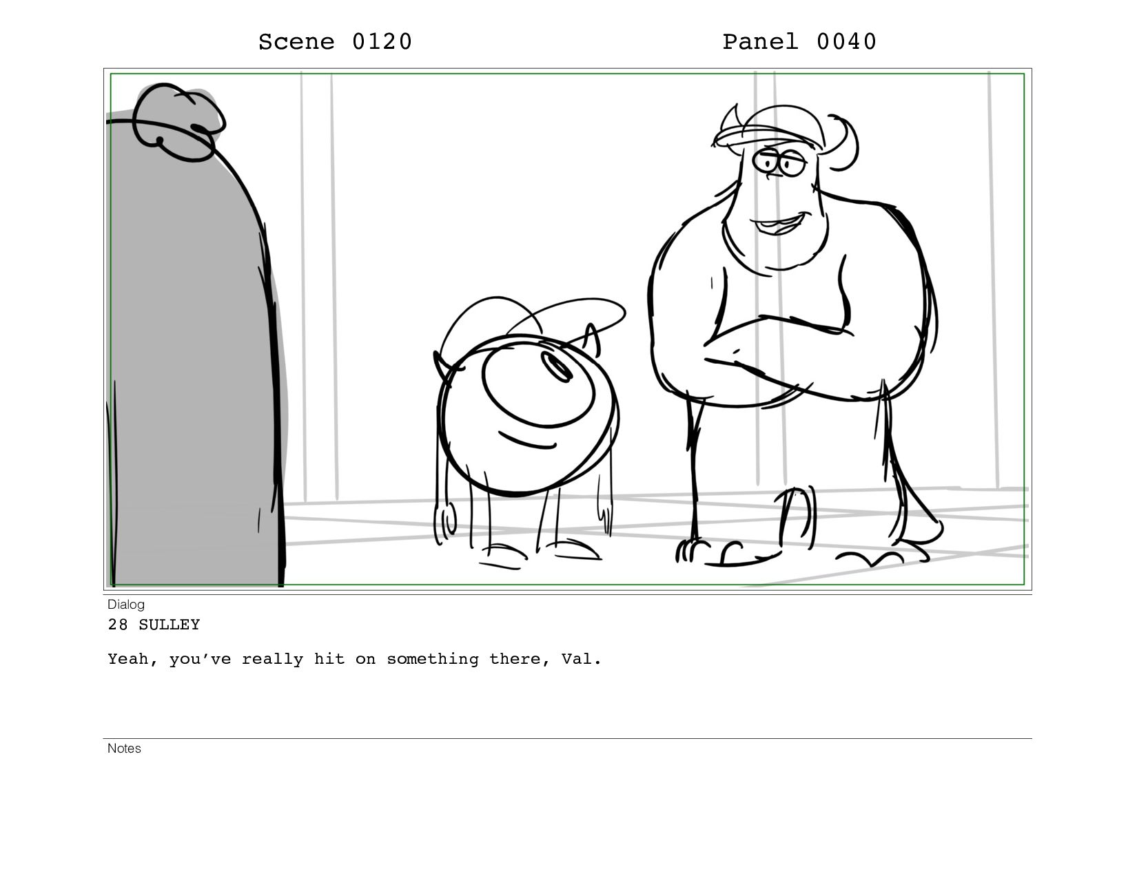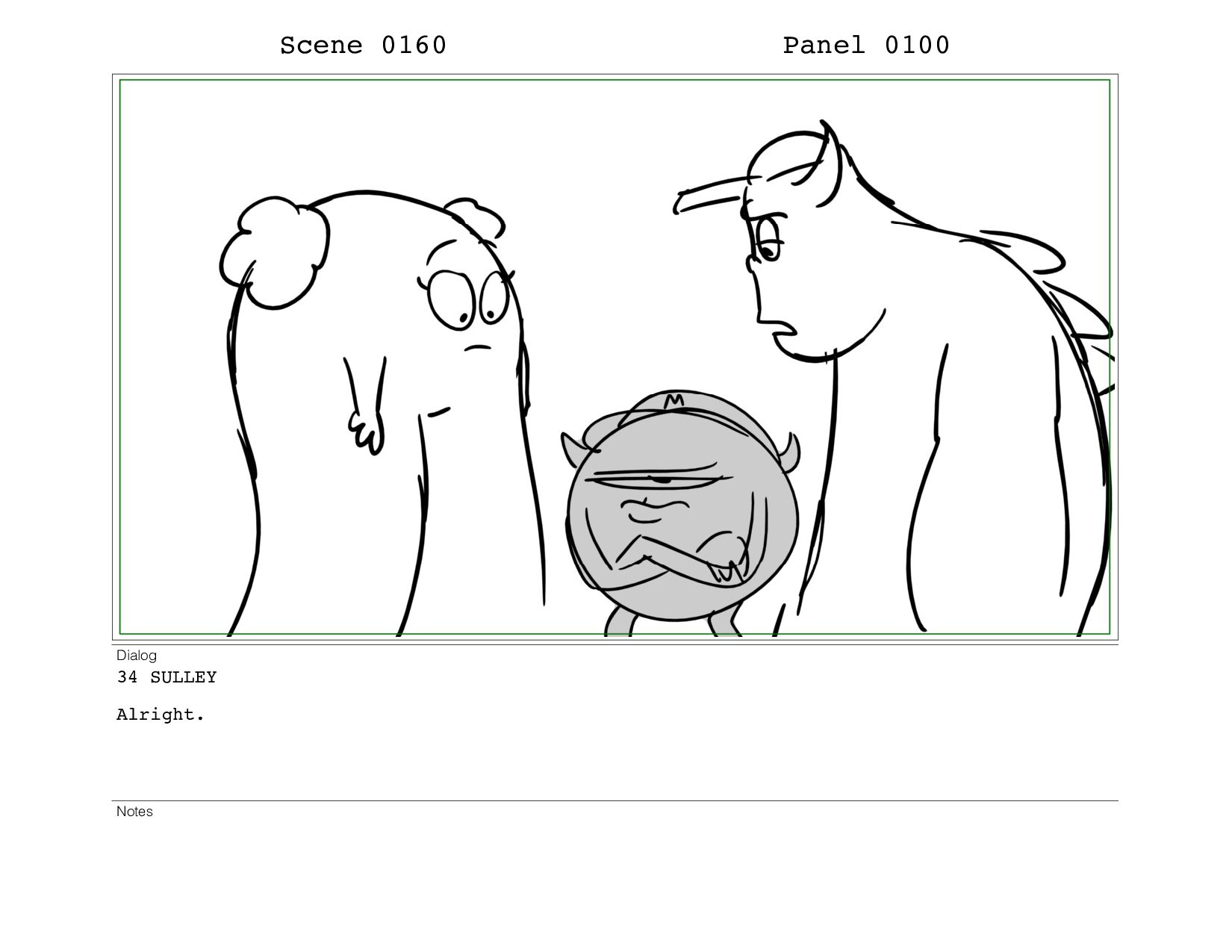 Scene 0160 Panel 0100 Dialog 34 SULLEY Alright. Notes