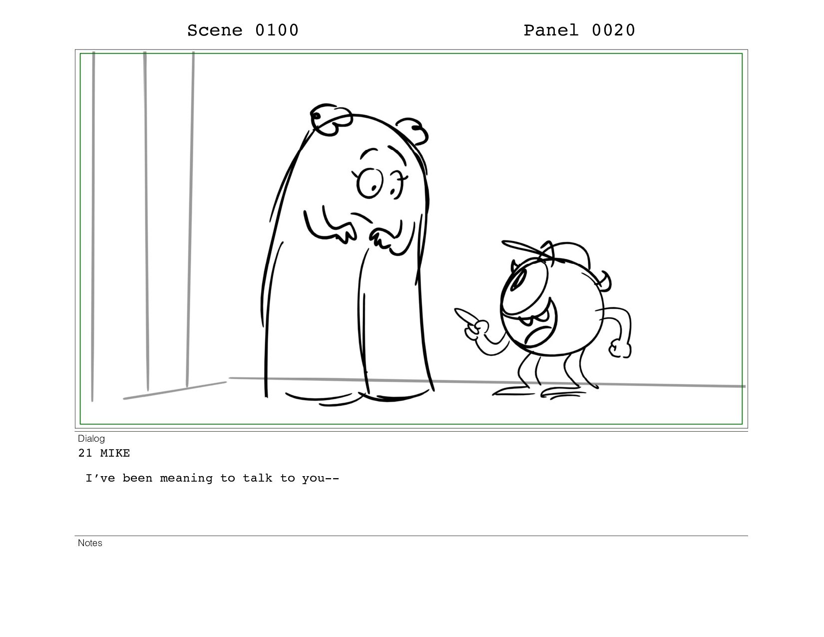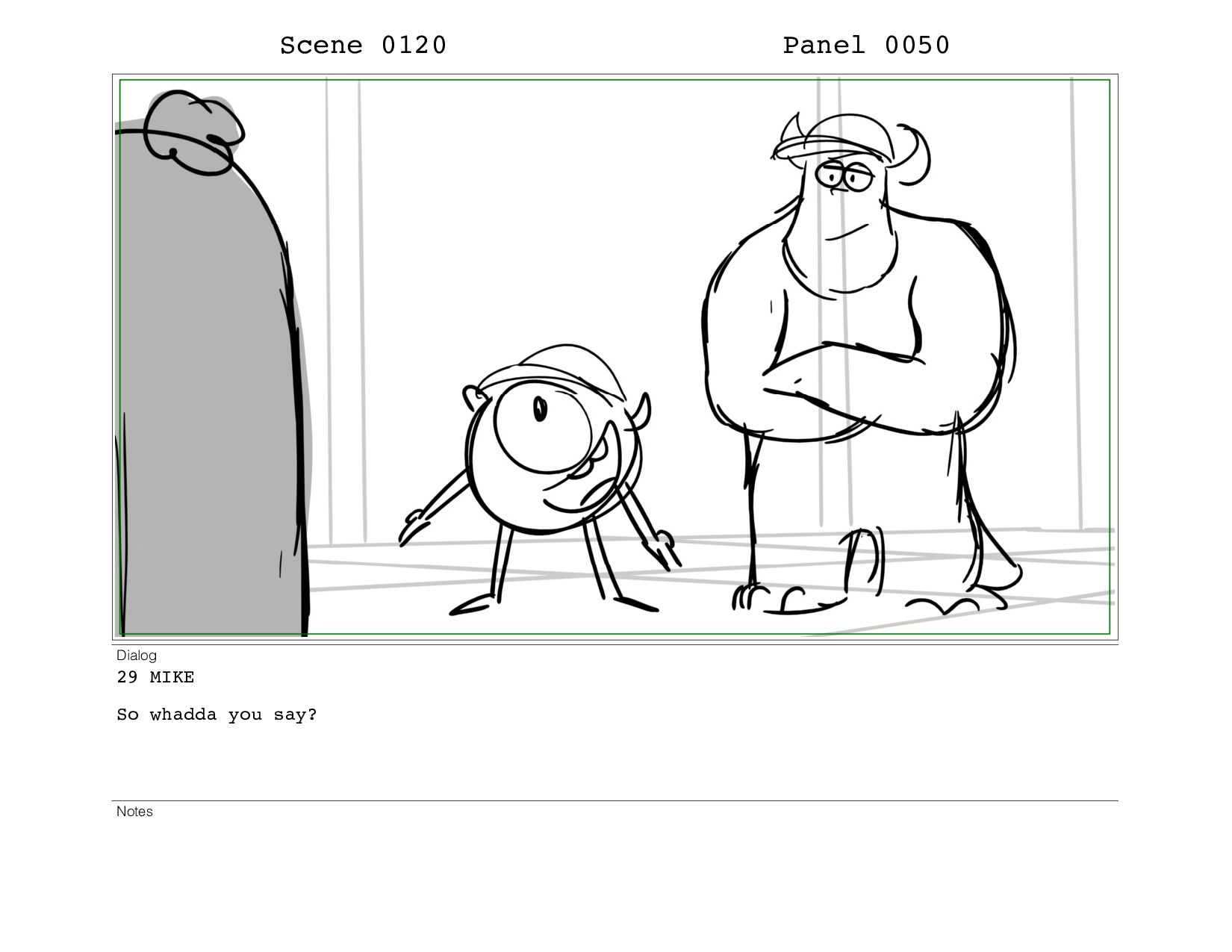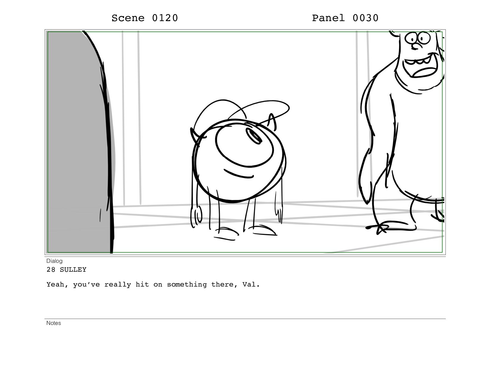 Scene 0160 Panel 0100 Dialog 34 SULLEY Alright. Notes