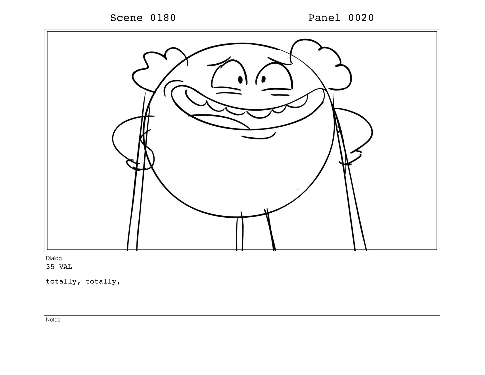 Scene 0180 Panel 0020 Dialog 35 VAL totally, totally, Notes