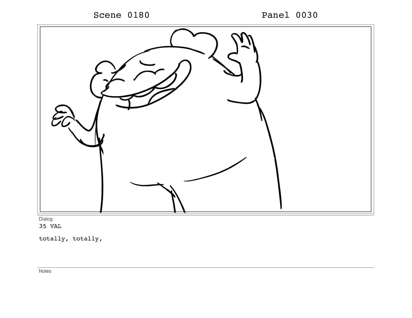 Scene 0180 Panel 0030 Dialog 35 VAL totally, totally, Notes
